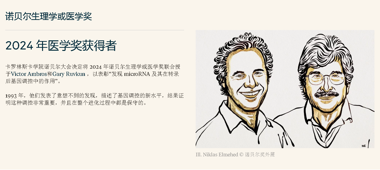 诺贝尔生理学或医学奖 2024 年医学奖获得者公布