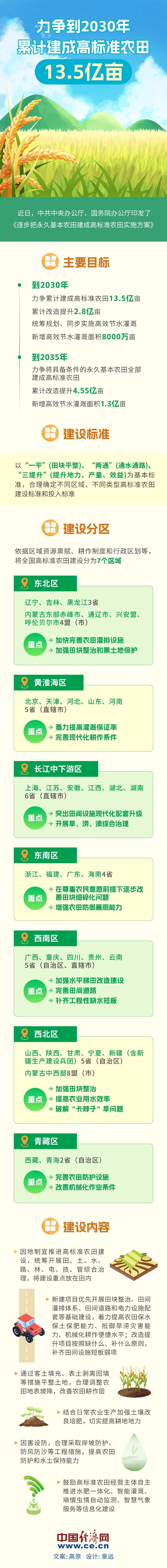 【图解】力争到2030年累计建成高标准农田13.5亿亩