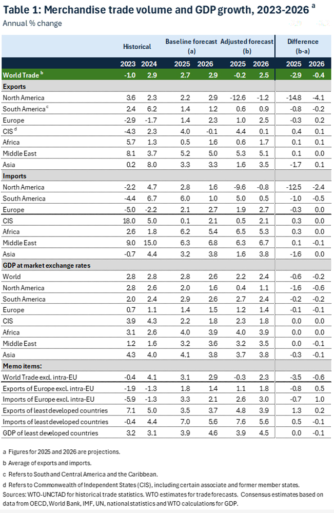 报告还首次对服务贸易作出预测,预计服务贸易也将受到关税不利影响。报告预测,2025年全球服务贸易量将增长4%,较先前预期低约1个百分点。