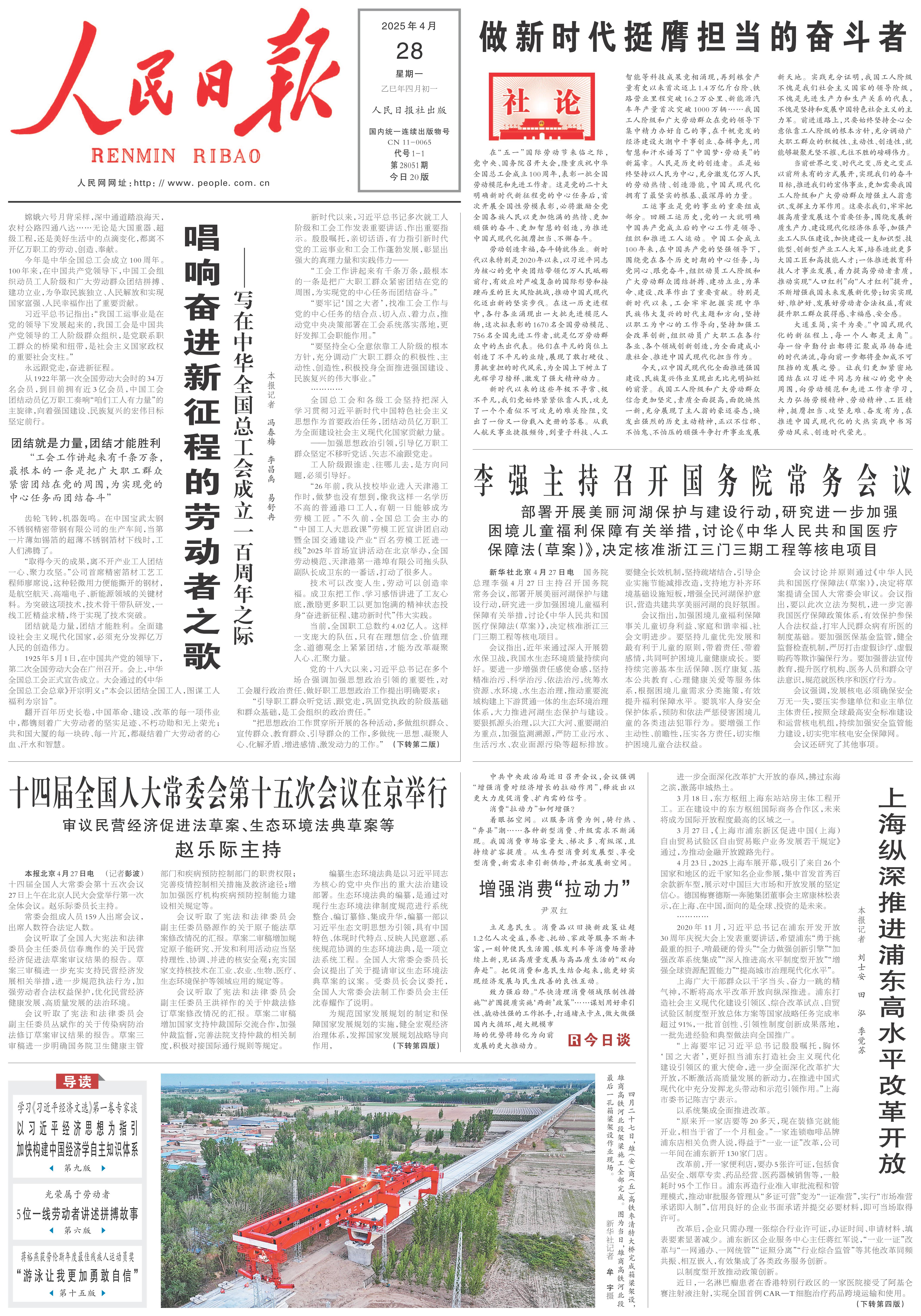 在“五一”国际劳动节来临之际,党中央、国务院召开大会,隆重庆祝中华全国总工会成立100周年,表彰一批全国劳动模范和先进工作者。这是党的二十大明确新时代新征程党的中心任务后,首次开展全国性劳模表彰,必将激励全党全国各族人民以更加饱满的热情、更加顽强的奋斗、更加智慧的创造,为推进中国式现代化挺膺担当、不懈奋斗。