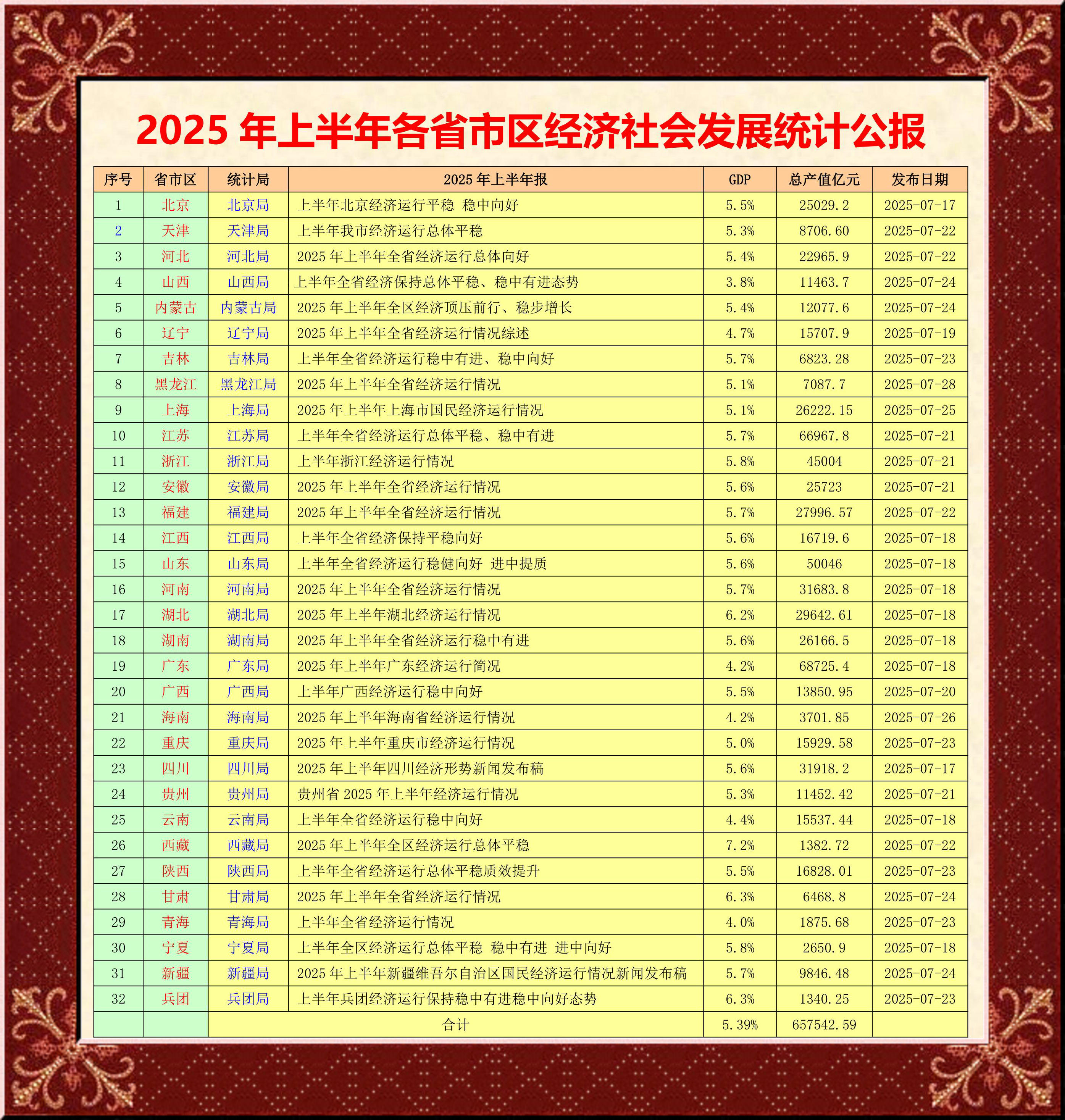 以湖南为例,近日,湖南省委常委会召开会议,在分析上半年全省经济运行形势时指出:今年上半年,全省经济运行总体平稳、向新向好、韧性增强,主要指标增速实现了高于去年同期、高于今年第一季度、高于全国平均水平的目标。