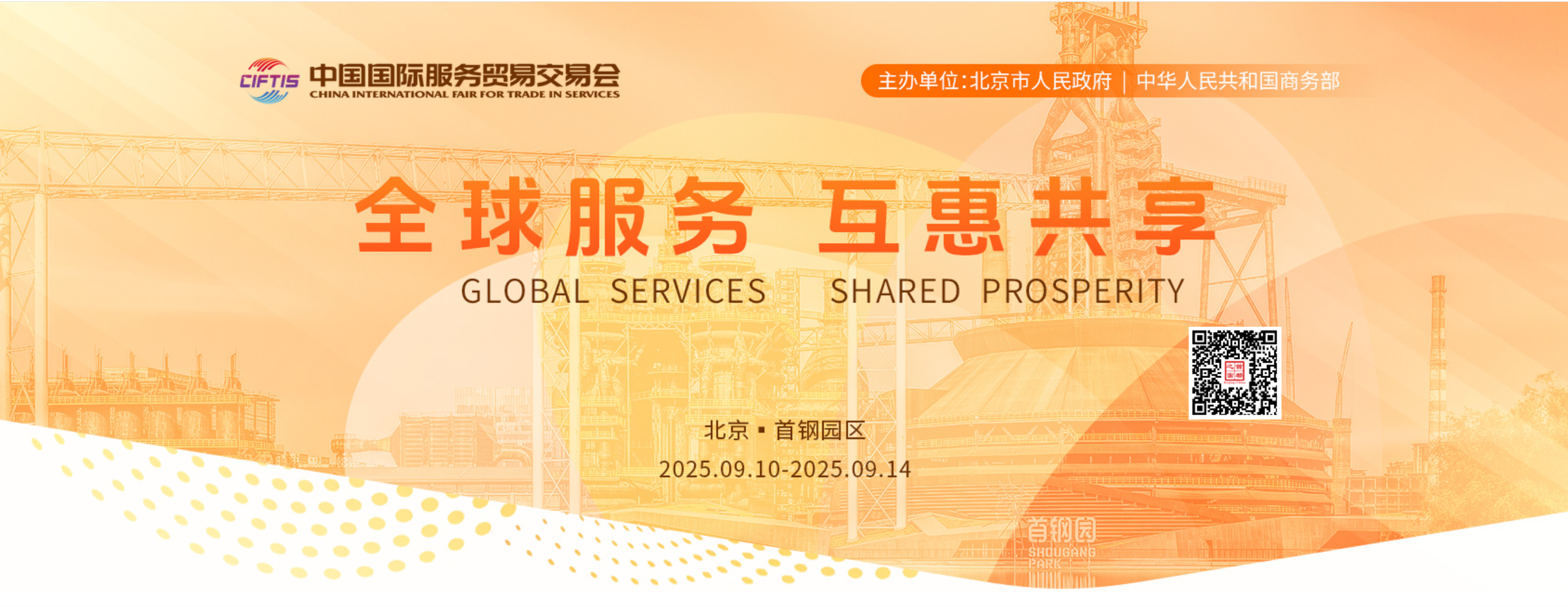 2025年中国国际服务贸易交易会当日在北京开幕,主题为“数智领航,服贸焕新”,由商务部和北京市人民政府共同主办。