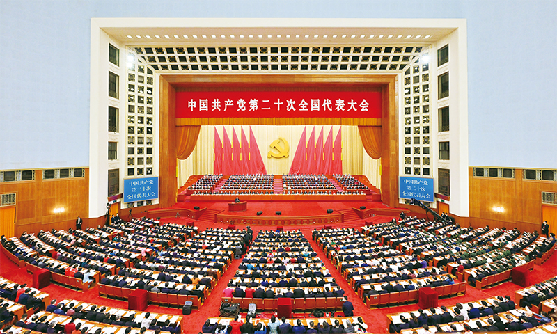 党的二十大提出开辟马克思主义中国化时代化新境界的重大任务,强调这是当代中国共产党人的庄严历史责任。图为2022年10月16日,中国共产党第二十次全国代表大会在北京人民大会堂开幕。 新华社记者 岳月伟/摄