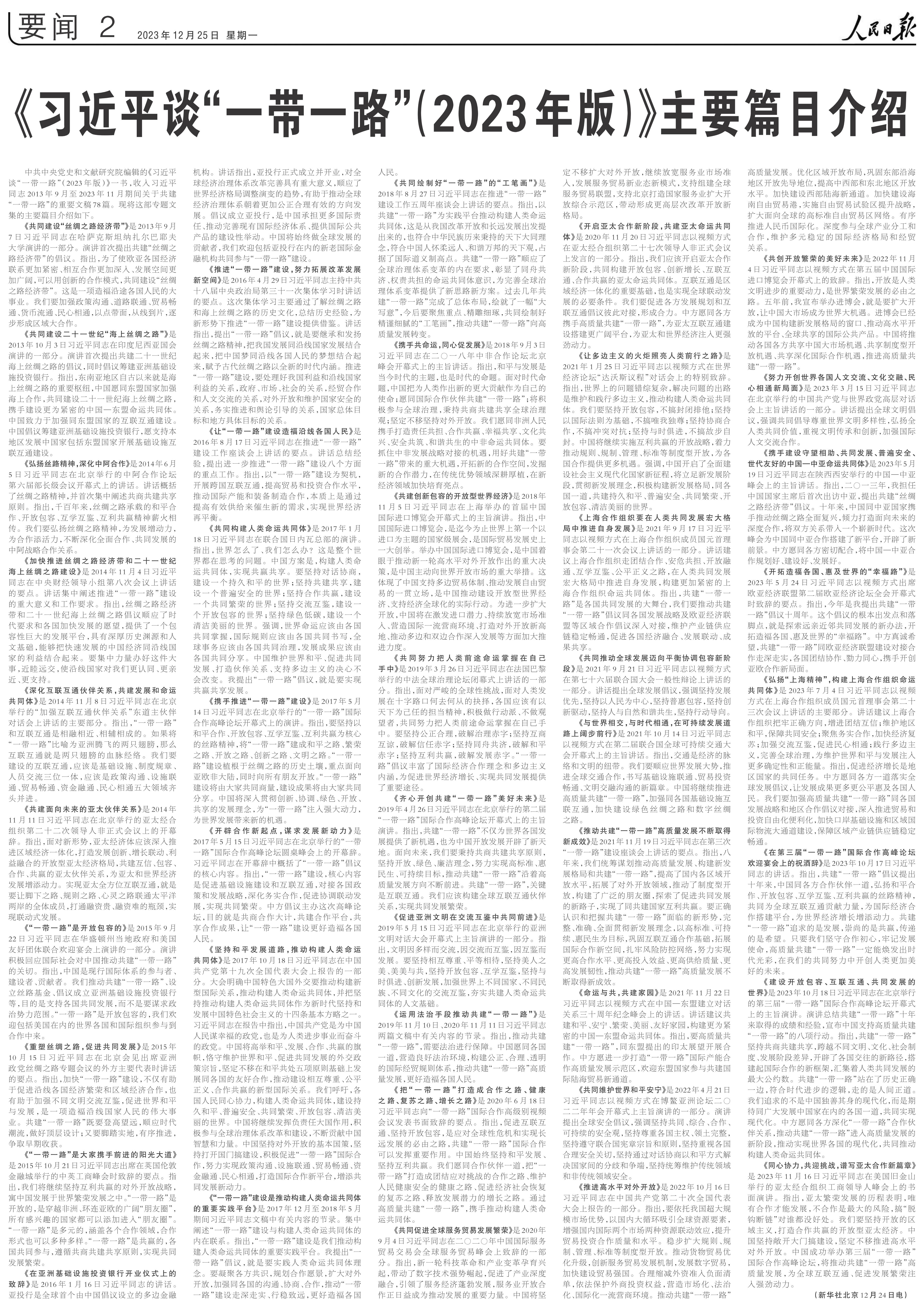 中共中央党史和文献研究院编辑的《习近平谈“一带一路”(2023年版)》一书,收入习近平同志2013年9月至2023年11月期间关于共建“一带一路”的重要文稿78篇。现将这部专题文集的主要篇目介绍如下。