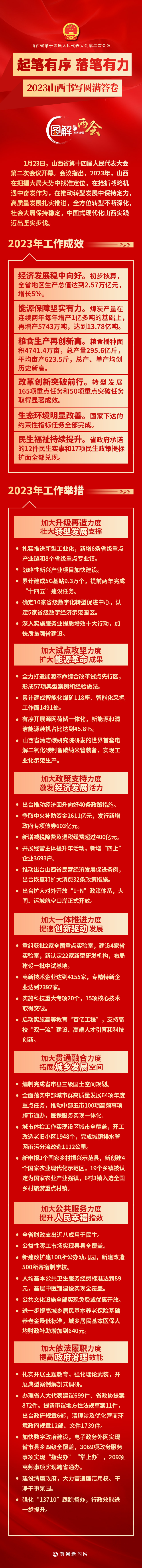 刚刚过去的2023年,是全面贯彻党的二十大精神的开局之年,是本届政府依法履职的第一年。5月16日,习近平总书记再次考察山西,对黄河流域生态保护、文物保护利用等工作作出重要指示,充分体现了党中央对山西的关怀关爱,极大地鼓舞着三晋儿女在强国建设、民族复兴伟业征程上激情满怀奋勇前进。我们牢记领袖嘱托,在省委坚强领导下,以习近平新时代中国特色社会主义思想为指导,全面贯彻党的二十大和二十届二中全会精神,坚决落实习近平总书记对山西工作的重要讲话重要指示精神,创造性贯彻落实党中央、国务院决策部署,新冠疫情防控实现平稳转段,高质量发展扎实推进,全方位转型不断深化,社会大局保持稳定,中国式现代化山西实践迈出坚实步伐。