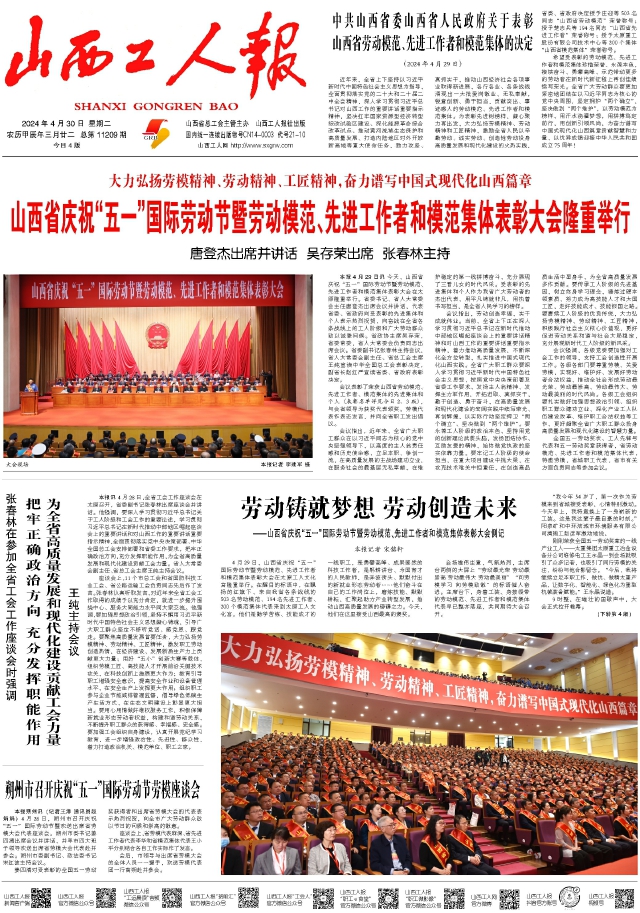 山西省庆祝“五一”国际劳动节暨劳动模范先进工作者和模范集体表彰大会隆重举行