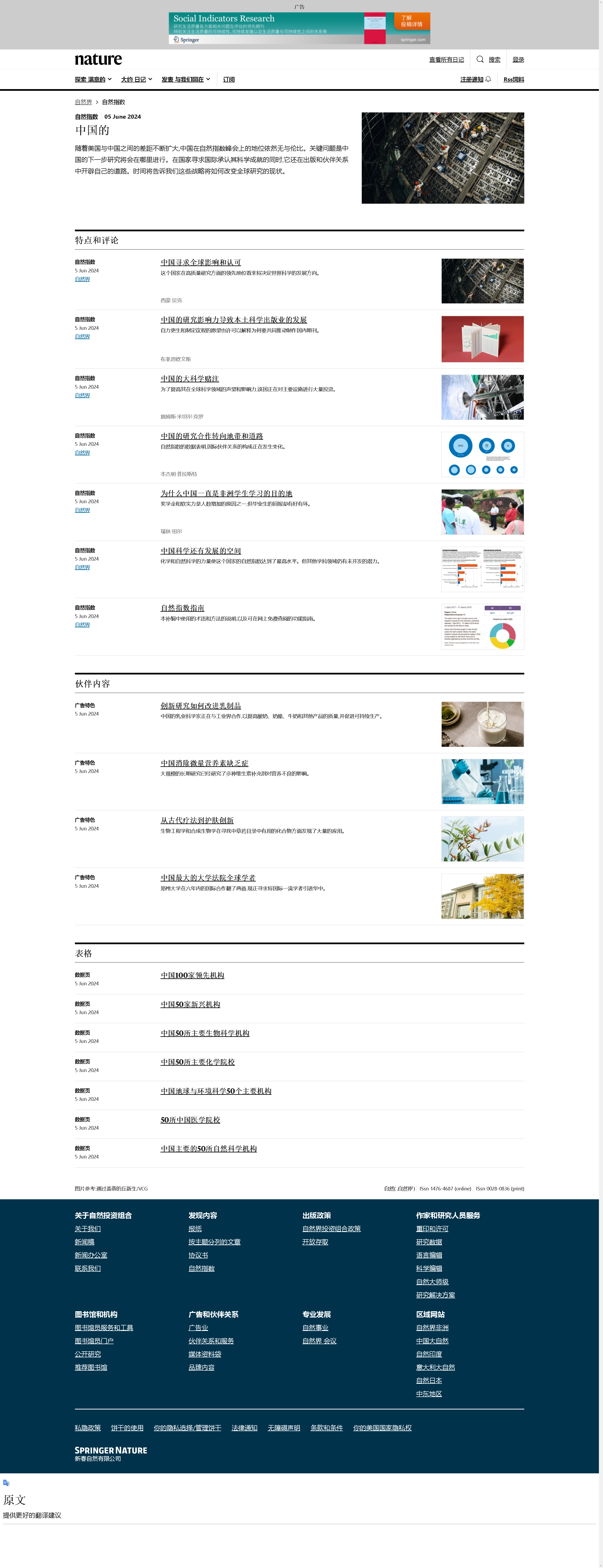 新华社伦敦6月5日电(记者郭爽)英国《自然》杂志网站最新上线的《2024自然指数-中国》显示,在自然指数数据库去年扩展后,中国在排名中仍位居第一。