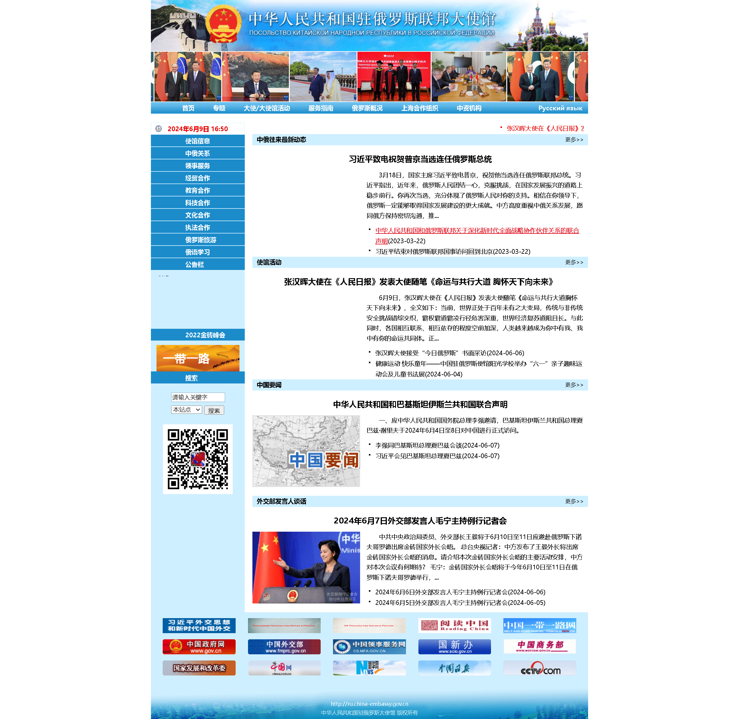 俄罗斯是推动构建人类命运共同体的重要伙伴。去年3月,习近平主席再次当选国家主席后选择俄罗斯作为首访国家。今年5月,俄罗斯总统普京在开启新任期后将中国作为首访国家。这充分体现中俄关系的高水平和特殊性。两国元首共同签署并发表的联合声明强调,中方提出的构建人类命运共同体理念和一系列全球倡议具有重要积极意义。