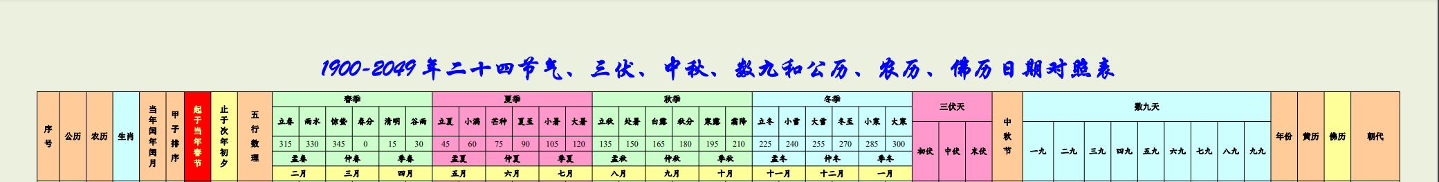 这是我三十三年前编辑的150年二十四节气表。为什么从1900年开始,又要到2049年结束呢?!因为这一百五十年,在中国历史上,是最具划时代里程碑意义的一百五十年!中华民族伟大复兴又一次向太阳一样光芒万丈!中华盛世五百年已经越来越近了越来越强了!