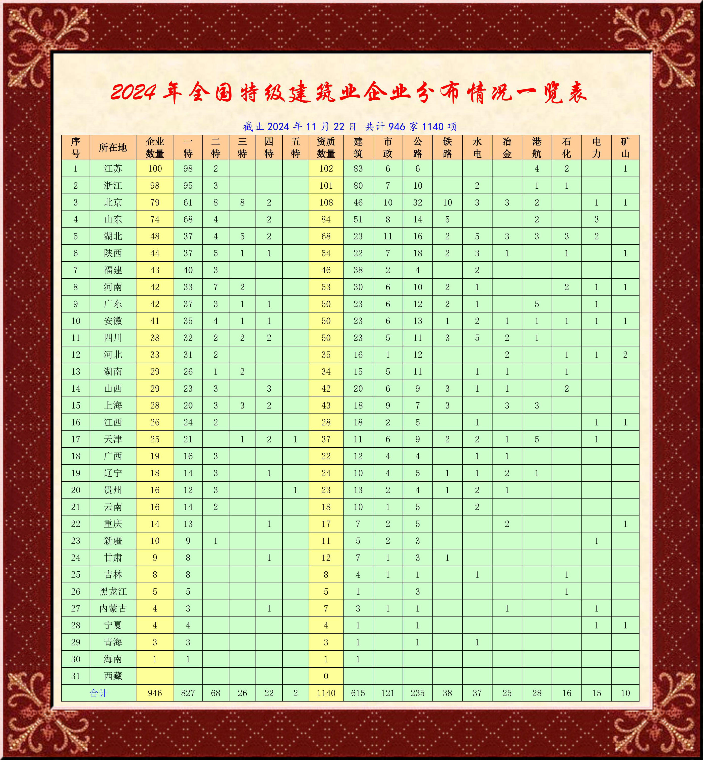 根据《中华人民共和国建筑法》及有关建设工程企业资质管理规定,现将我部核准的工程勘察资质、工程设计资质、建筑业企业资质、工程监理企业资质的单位名单(2024年度第十一批)予以公布。未予核准的单位可登录住房城乡建设部政务服务门户,点击“申请事项办理进度查询(受理发证信息查询)”栏目查询原因。