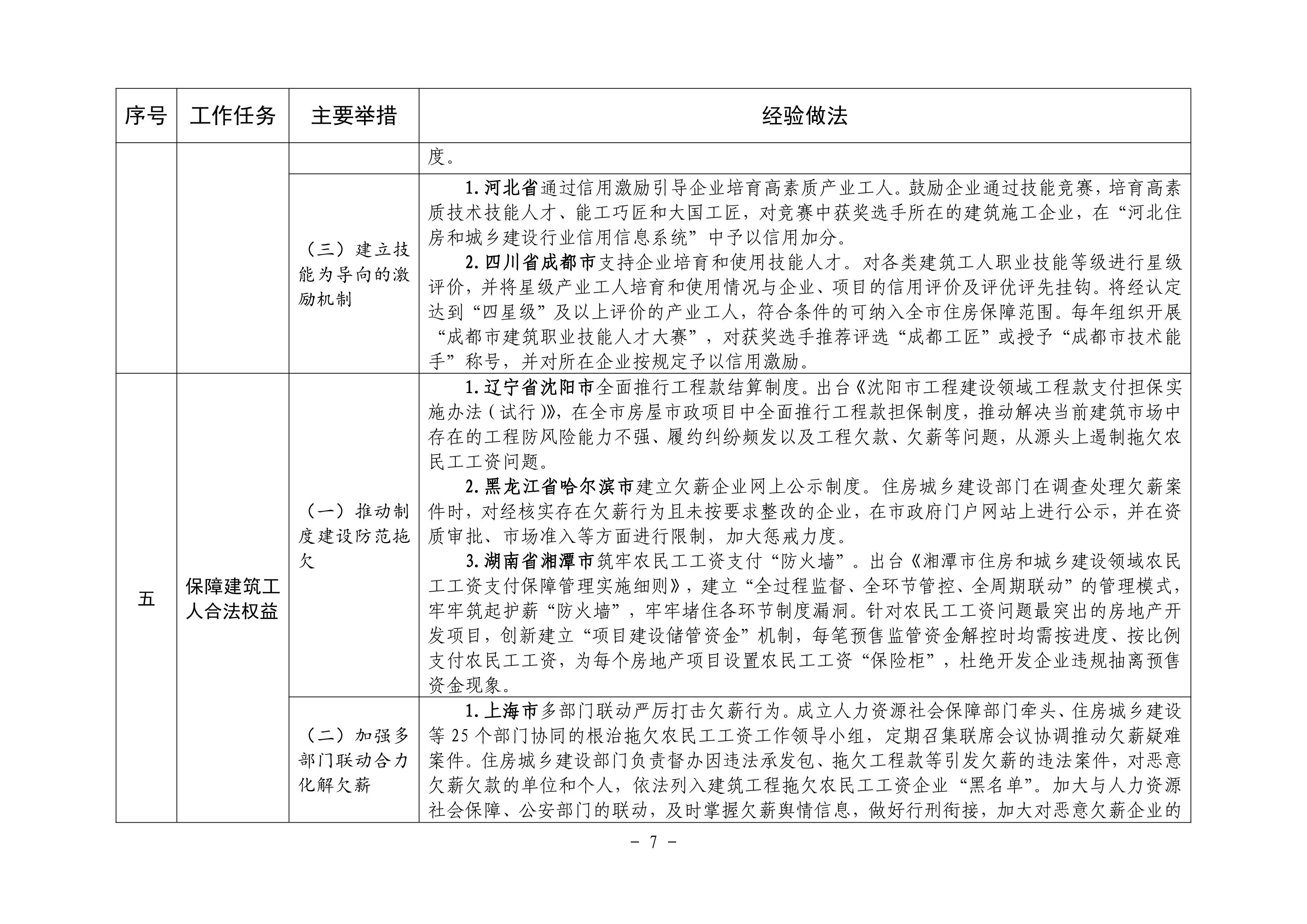 按照住房城乡建设部等部门《关于加快培育新时代建筑产业工人队伍的指导意见》(建市〔2020〕105 号)要求,各地围绕推进建筑农民工向新时代建筑产业工人转型、完善建筑工人实名制管理、提升建筑工人技能水平、加强统筹协作和政策支持、保障建筑工人合法权益等方面,积极探索、大力推进建筑产业工人队伍建设,取得了积极成效。现将有关经验做法印发给你们,请结合实际学习借鉴。