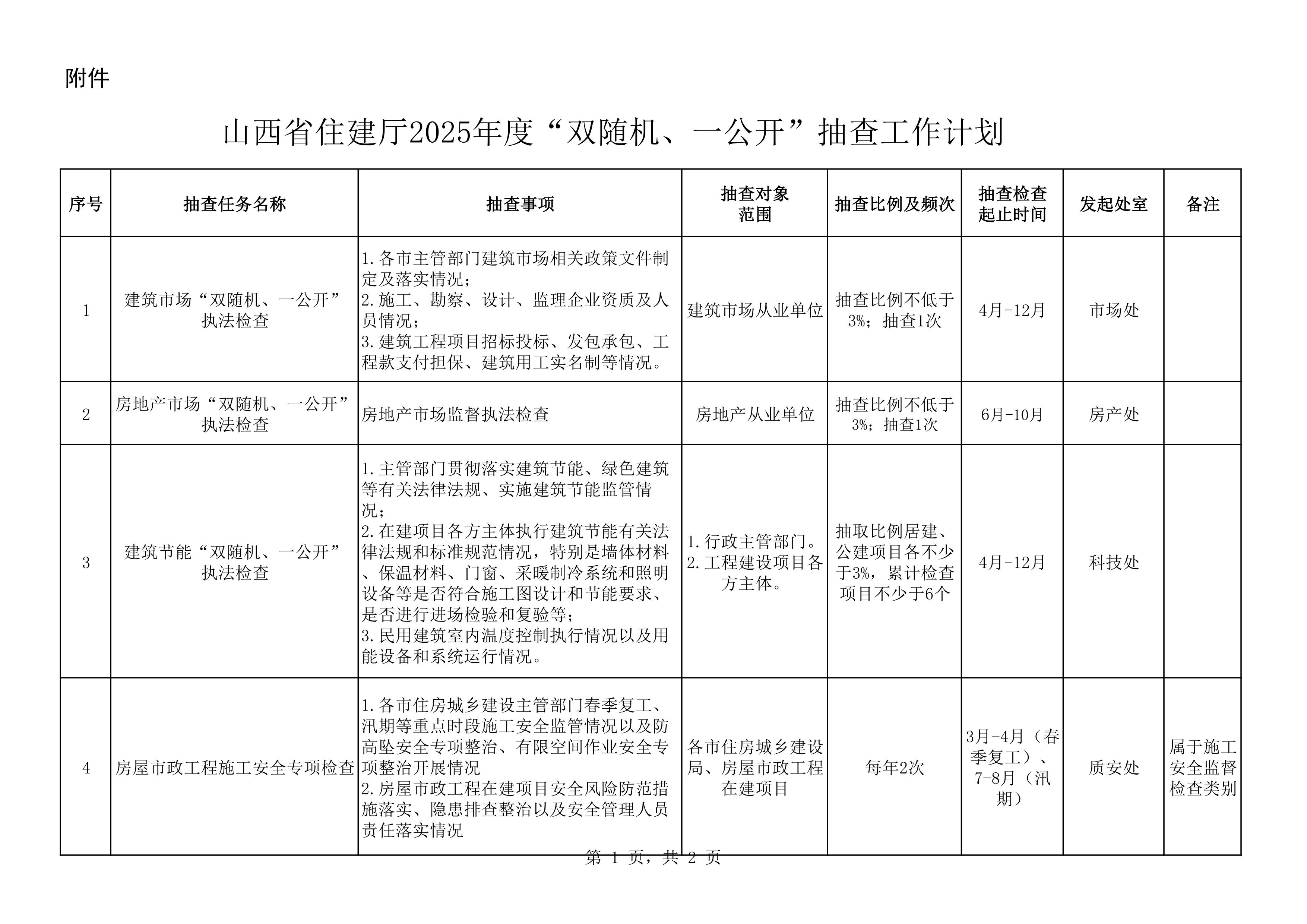 附件:山西省住建厅2025年度“双随机、一公开”抽查工作计划.xls