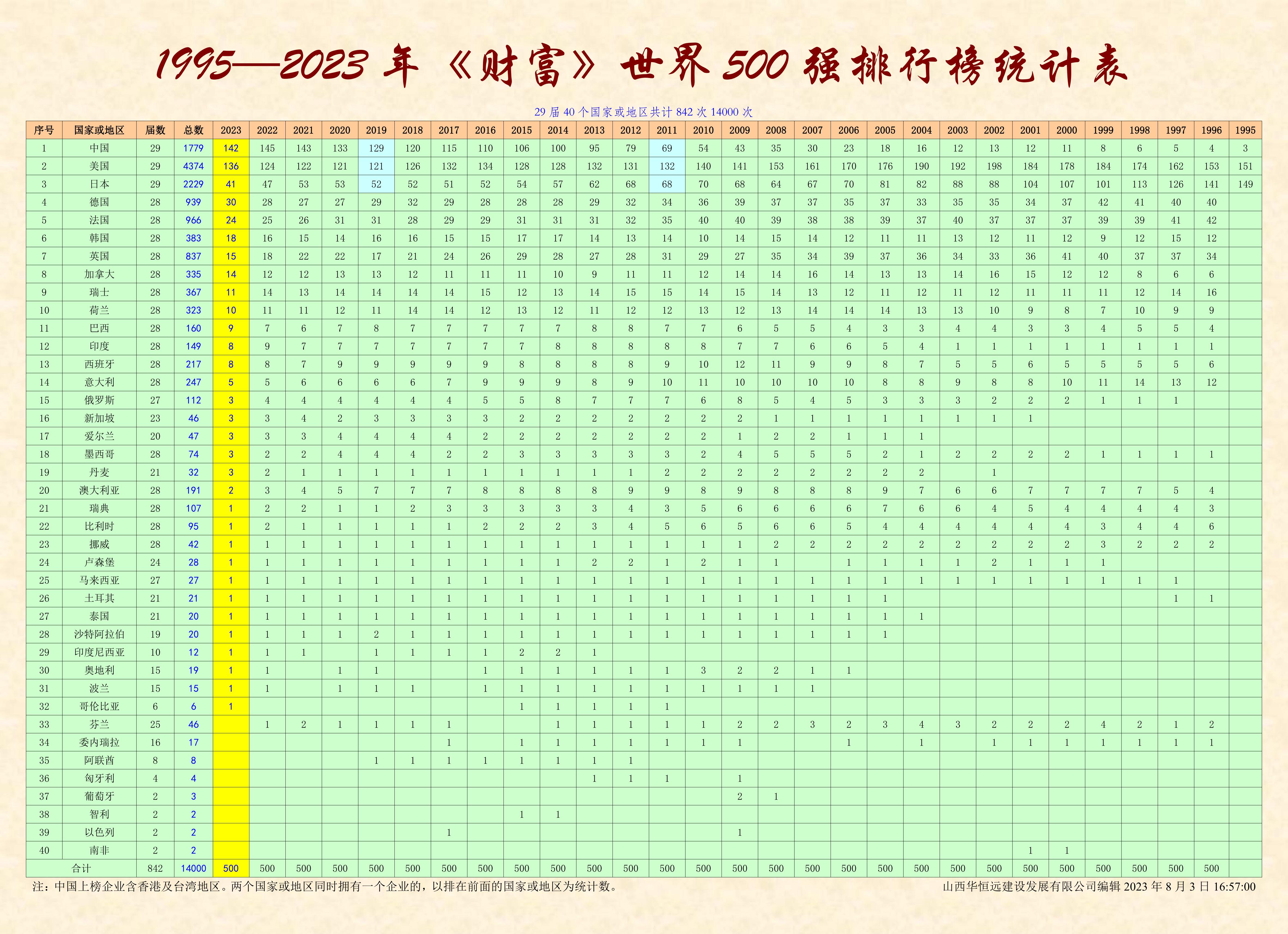 1995年,《财富》杂志首次公布世界500强企业。日本有149家,美国有151家,占世界500强企业的近30%。当时,世界500强企业中只有3家在中国。