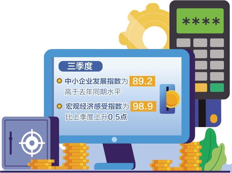 三季度,反映企业信心状况的宏观经济感受指数为98.9,比上季度上升0.5点,上升幅度较为明显。“今年以来,国家先后出台促进民营企业发展壮大的意见及相关细则、促进民间投资17条措施,并在国家发展改革委设立民营经济发展局。随着一系列政策出台及组织架构的建立健全,中小企业发展信心显著提振。”朱玉说。
