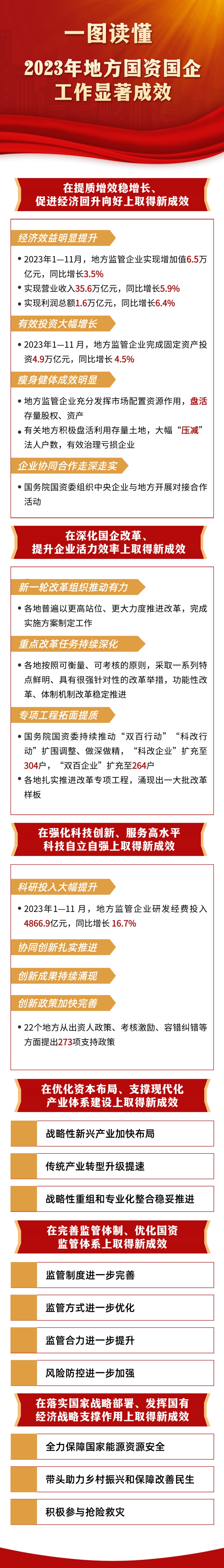 他表示,国务院国资委将在2024年一季度开展2023年度地方国企改革评估工作,各地也要结合新一轮改革任务的特点,优化改革进度跟踪和评价体系,对功能使命类的改革要加强考核引导,对体制机制类改革要注重“形神兼备”。