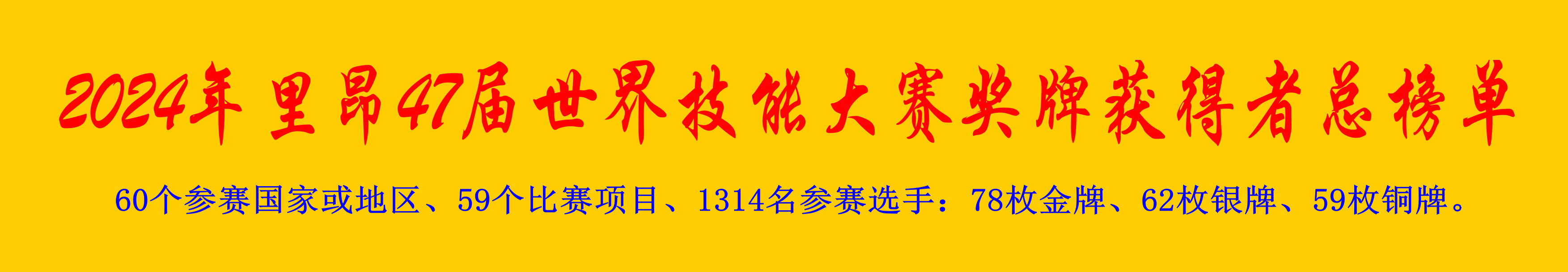 2024第47届世界技能大赛中国代表团奖牌榜