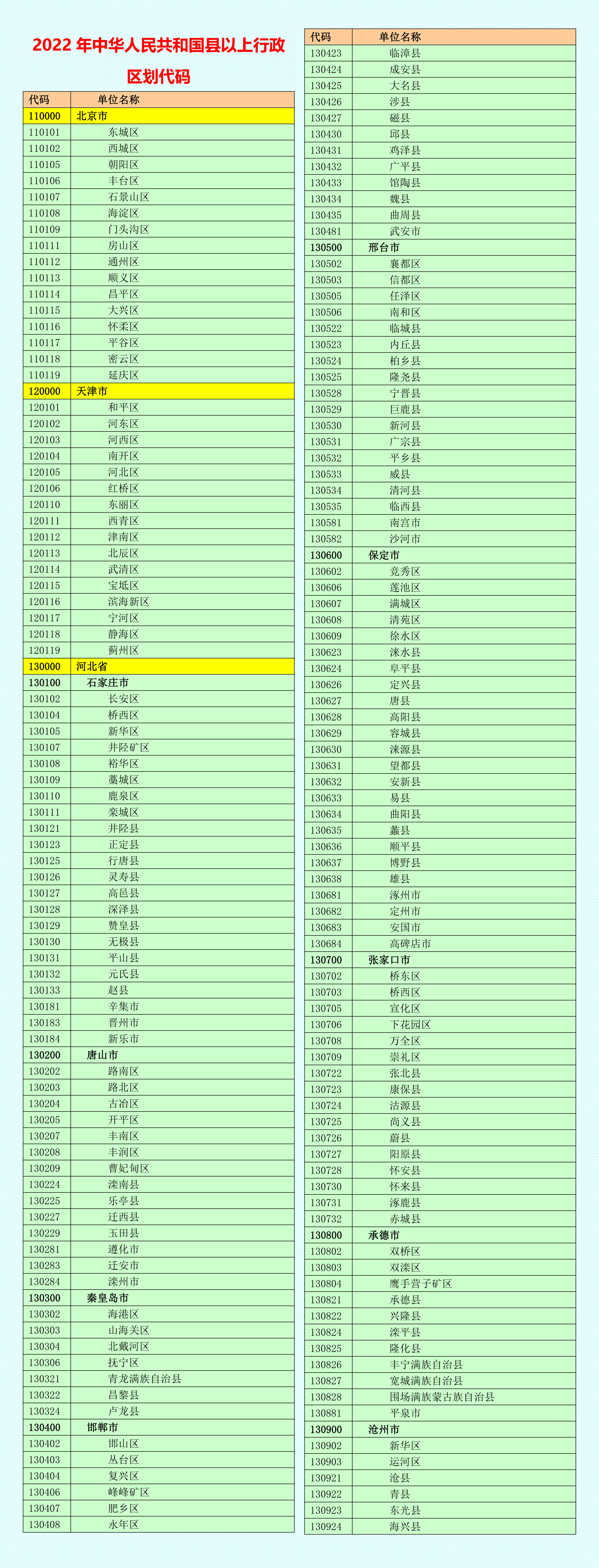 2022年中华人民共和国行政区划代码 | 2023-04-23 | |||||||