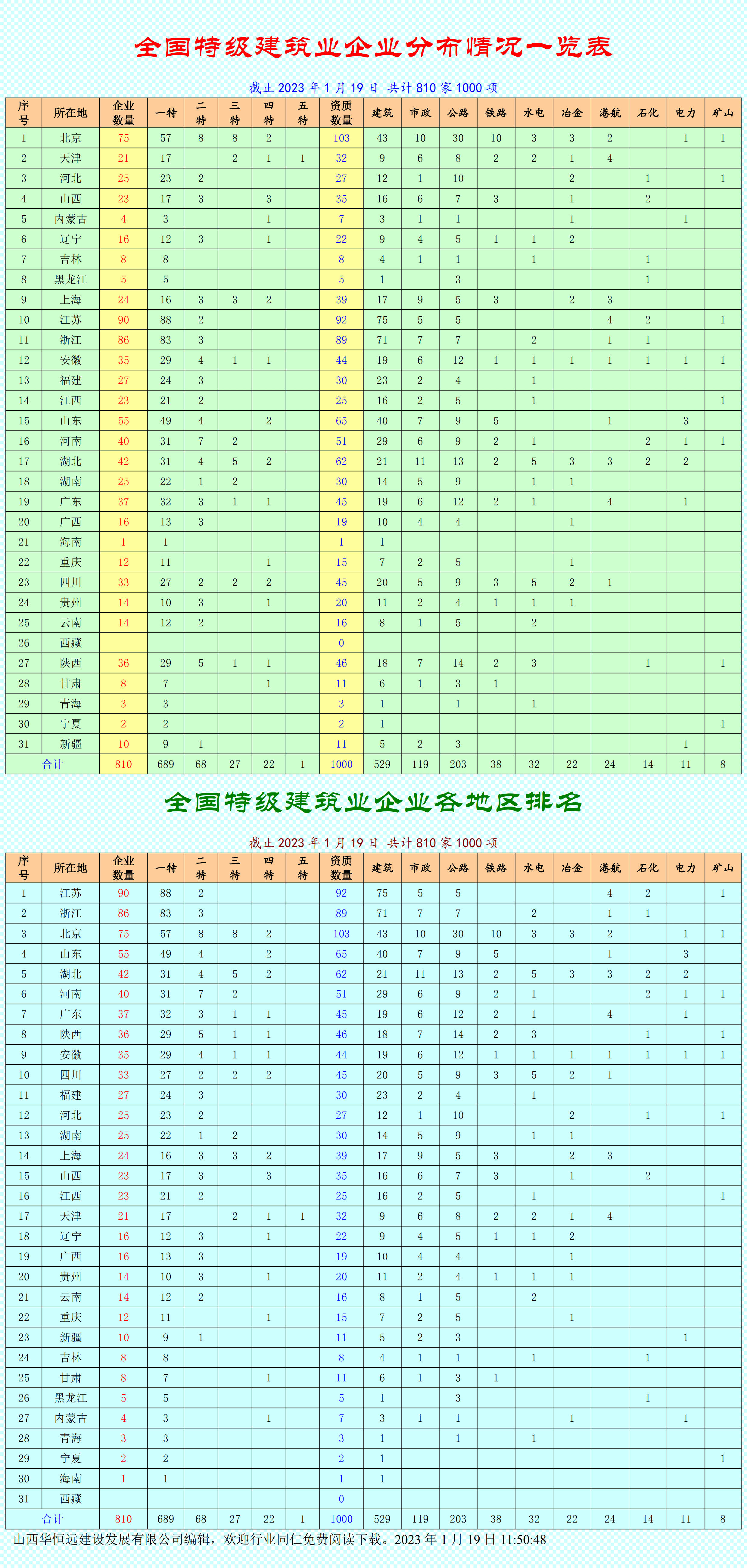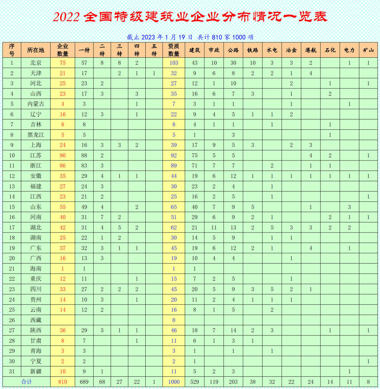 关注核准特级资质企业,是我最大的事,坚持不懈,持之以恒,一以贯之,已经成为生命的重要组成部分!为什么?对行业的热爱,对企业的忠诚,还有比这大的事情吗?!不但关注,还要付诸行动,让更多的人关注,更多的人参与,更多的人行动,这是我义无反顾和责无旁贷的责任与使命,让大家轻松愉快,一目了然,就能看清楚建筑企业的佼佼者,行业翘楚,领军大公司是哪个省,谁是第一!810家,1000项资质,多么吉祥的数字呀!