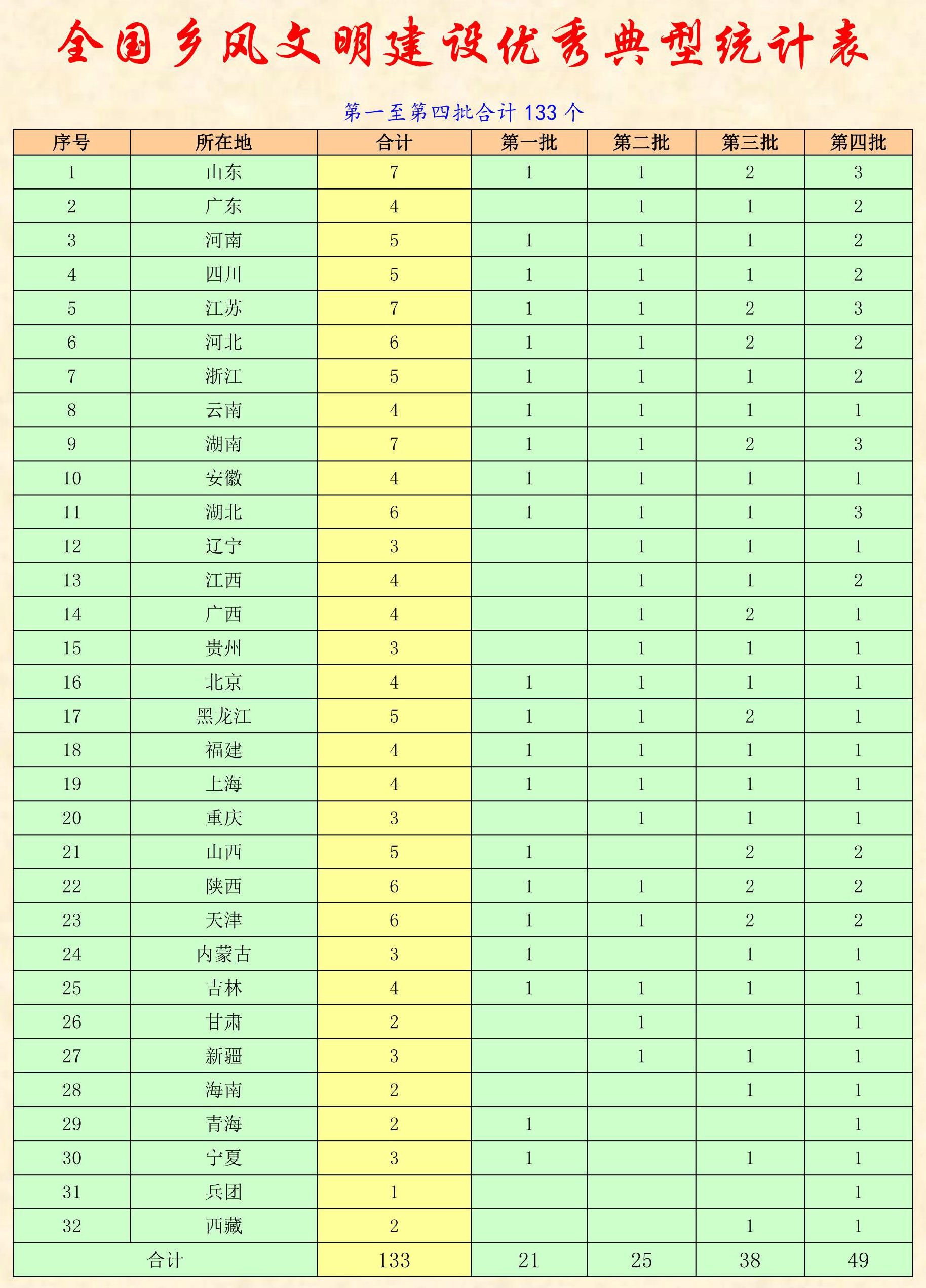 总序号 县、乡镇、村名称 优秀典型经验 级别 批次 年度 序号