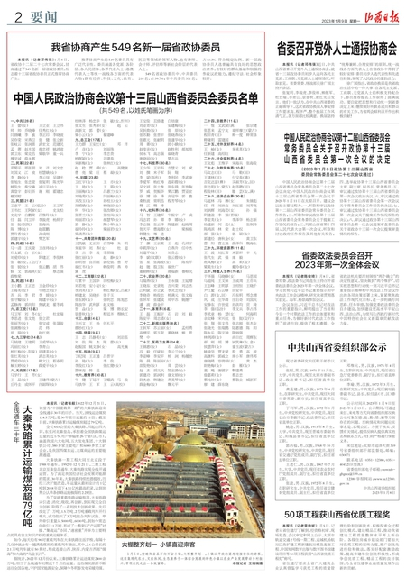 山西省第十四届人民代表大会代表名单和中国人民政治协商会议第十三届山西省委员会委员名单(各549名)