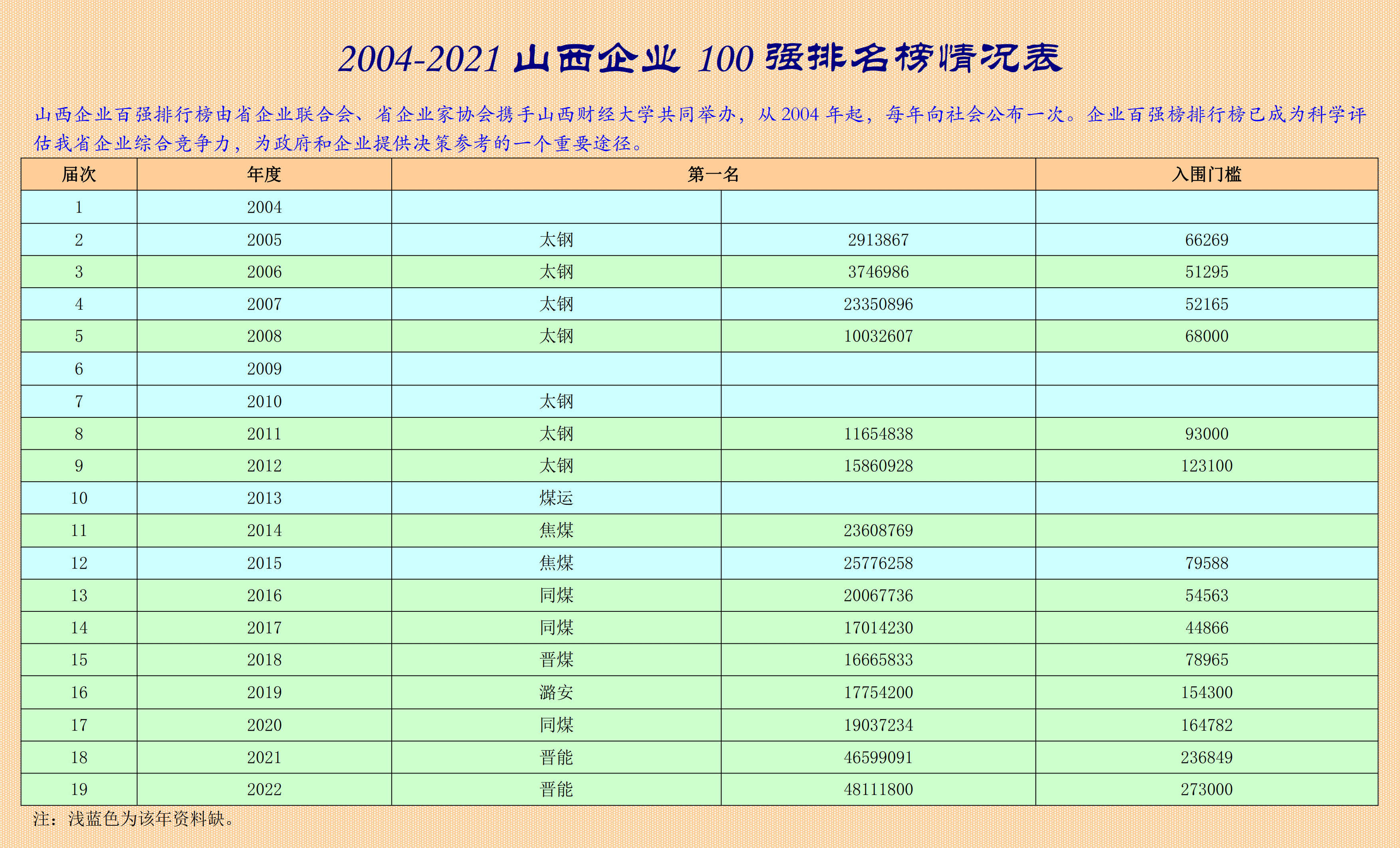 历年山西企业100强排名榜