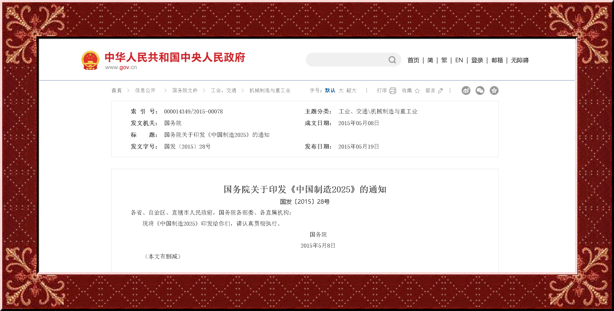 来源:发文字号: 国发〔2015〕28号 发布日期: 2015年05月19日