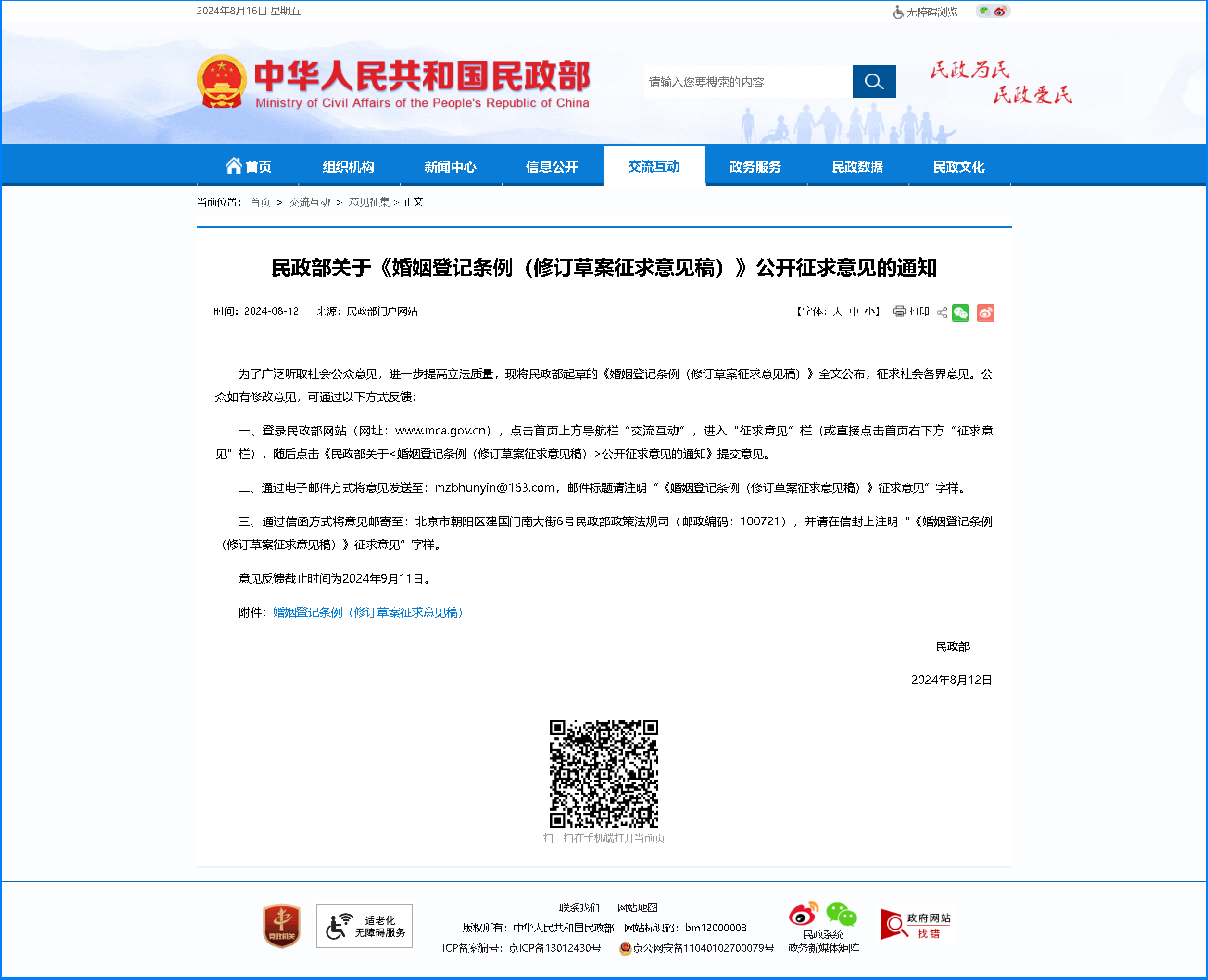 新华社北京8月16日电 题:民政部有关司局负责人解读《婚姻登记条例(修订草案征求意见稿)》