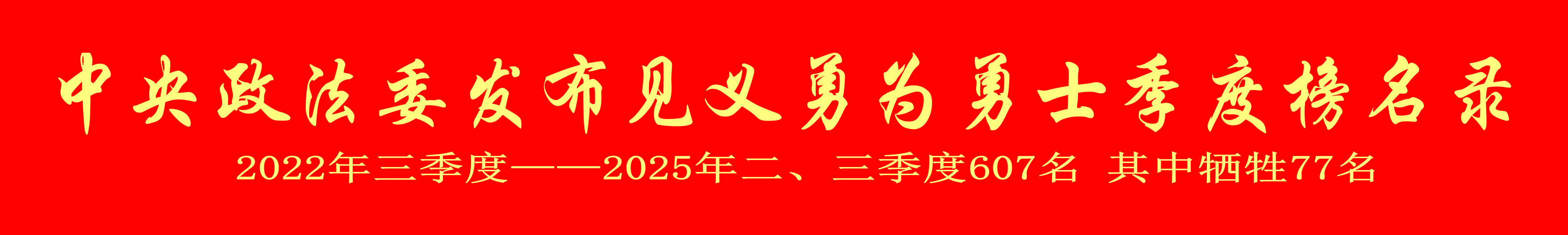 见义勇为勇士季度选树活动由中央政法委主办,中华见义勇为基金会承办。见义勇为勇士典型经各地及时确认、奖励、宣传,受到社会各界广泛关注。2022年9月以来,已发布11次见义勇为勇士榜,共有607位见义勇为勇士获得上榜奖励。