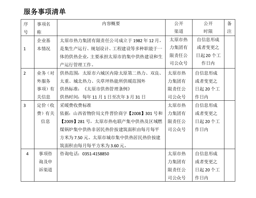 太原市热力集团有限责任公司供热服务范围及服务电话