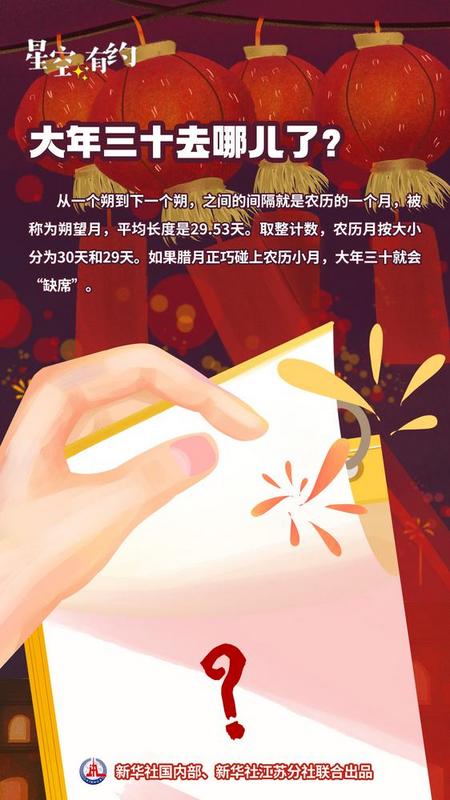 2月9日将迎来大年三十。翻开日历你会发现,2024年是未来几年中最后一个有大年三十的年份。2025年至2029年的5年里,都没有大年三十,大年二十九过后,就将迎来大年初一。大年三十去哪儿了?为什么大年三十会时不时“玩消失”,大年初一从不“缺席”?天文科普专家为您解惑。
