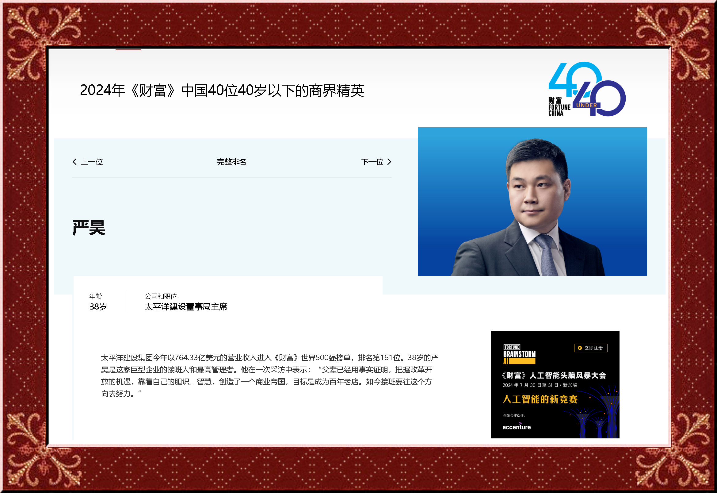 在我们建筑行业,我最认可和欣赏的行业领袖,太平洋建设集团新老两代掌门人严介和严昊父子当属世界第一!