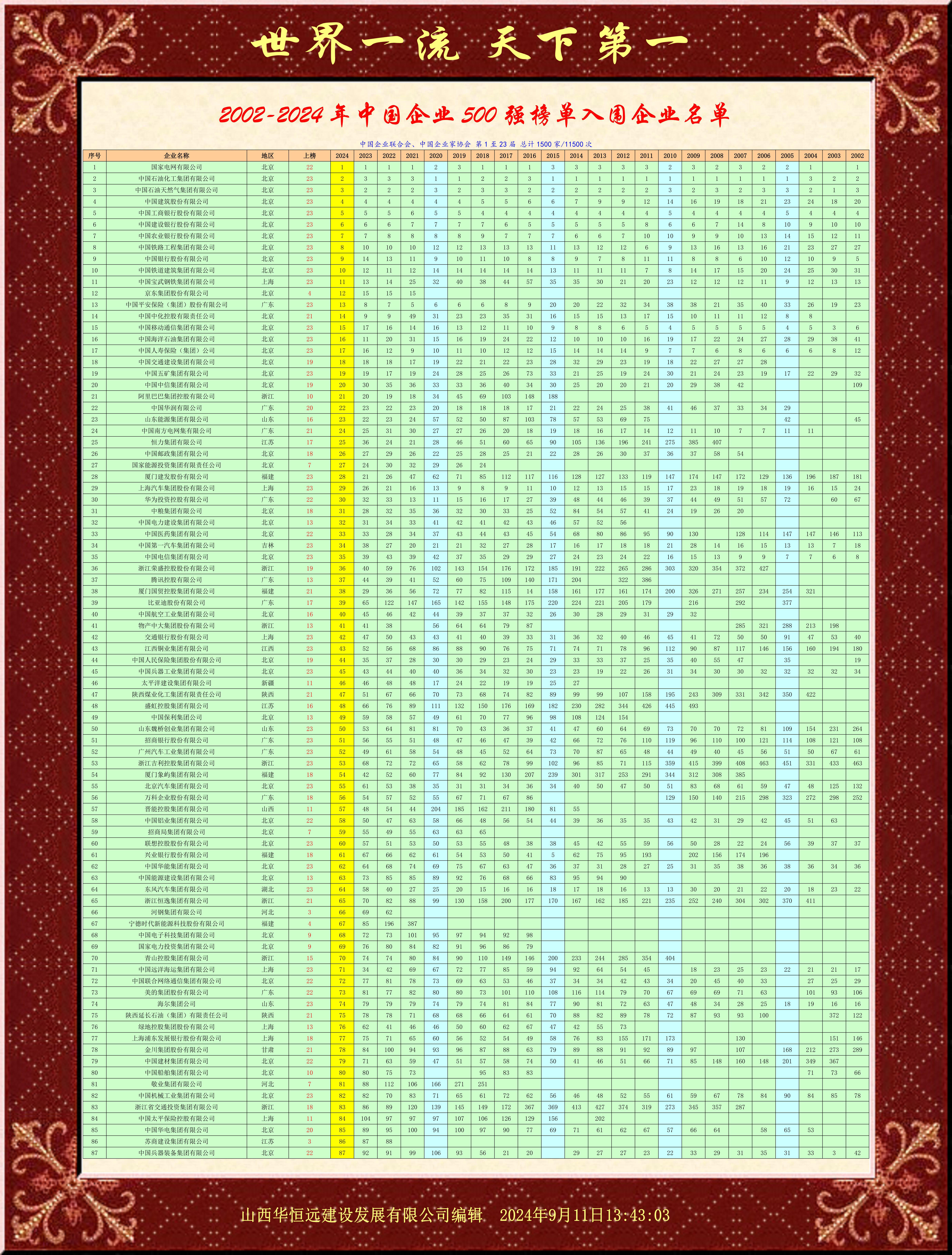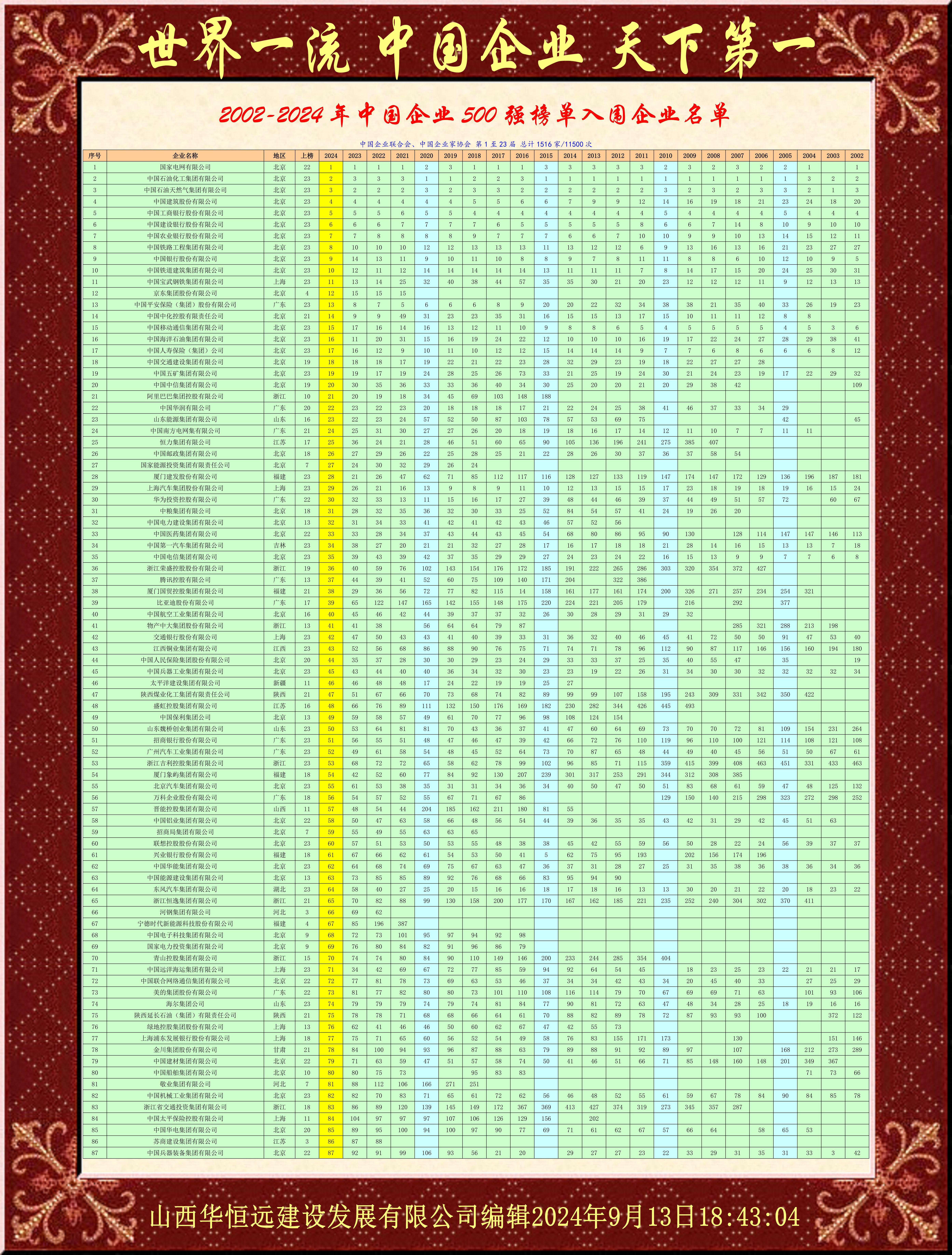 这是上天交给我的使命和任务,完完整整把中国500强企业的成就和丰功伟绩展示出来,这是任何人不可能完成的任务!