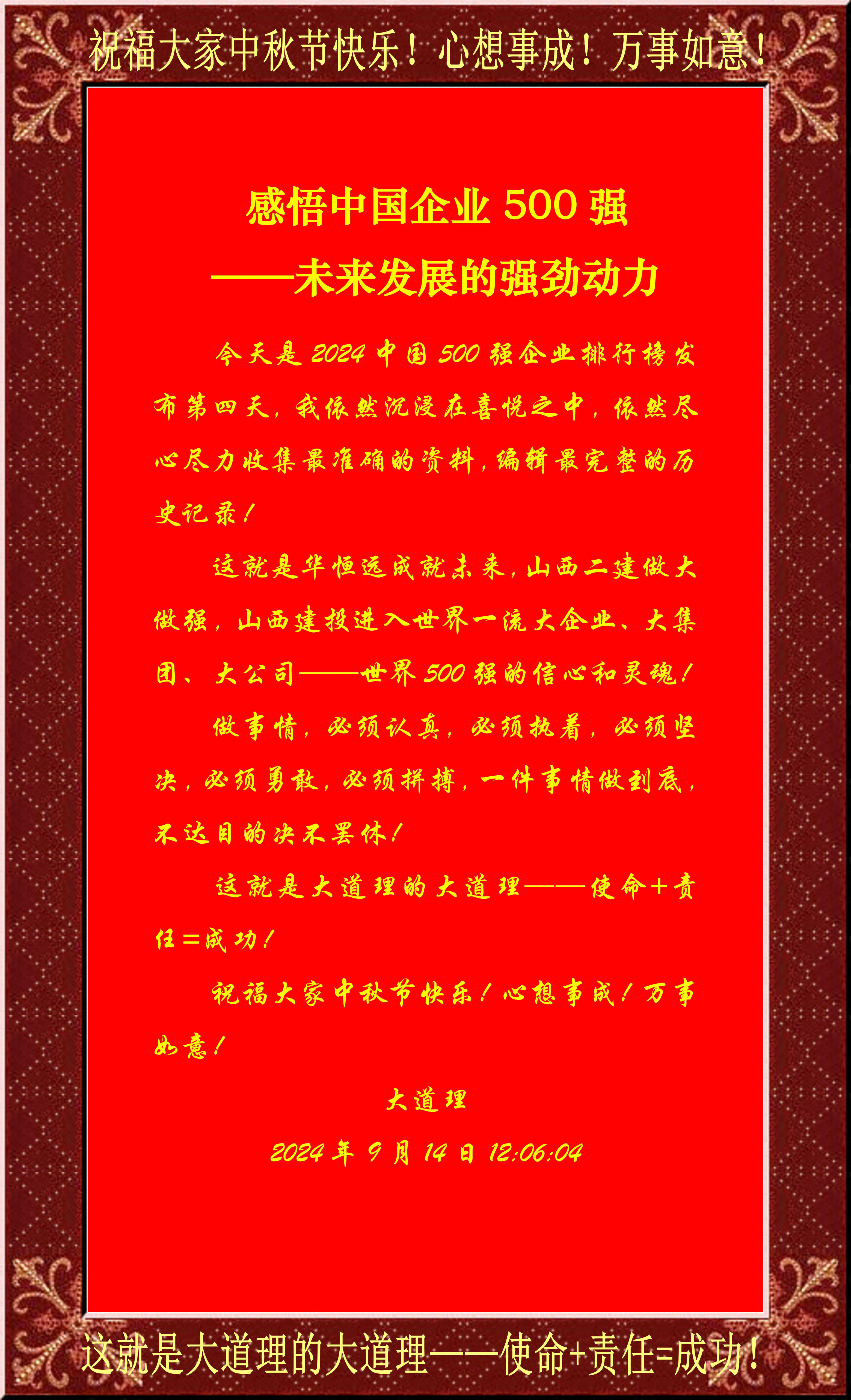 今天是2024中国500强企业排行榜发布第四天,我依然沉浸在喜悦之中,依然尽心尽力收集最准确的资料,编辑最完整的历史记录!