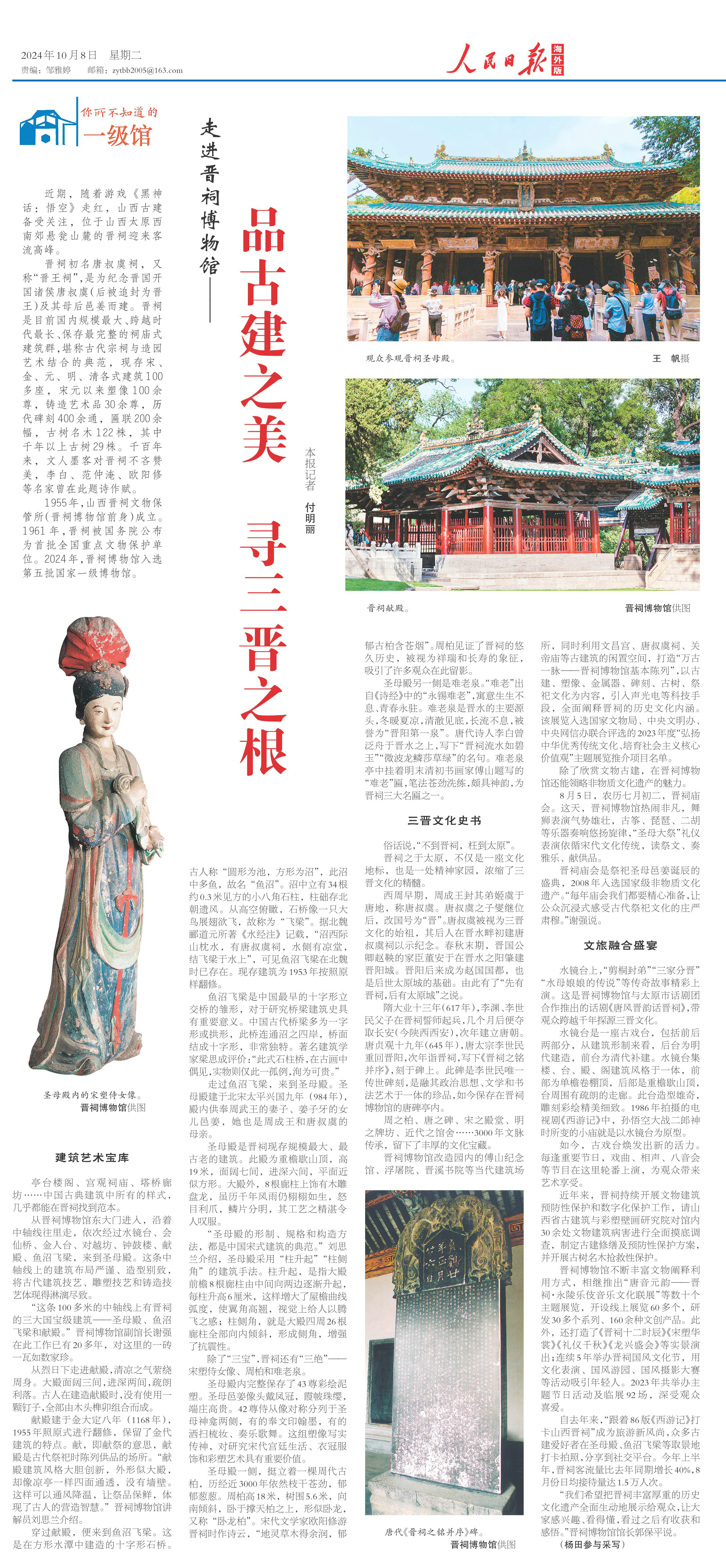 “我们希望把晋祠丰富厚重的历史文化遗产全面生动地展示给观众,让大家感兴趣、看得懂,看过之后有收获和感悟。”晋祠博物馆馆长郭保平说。
