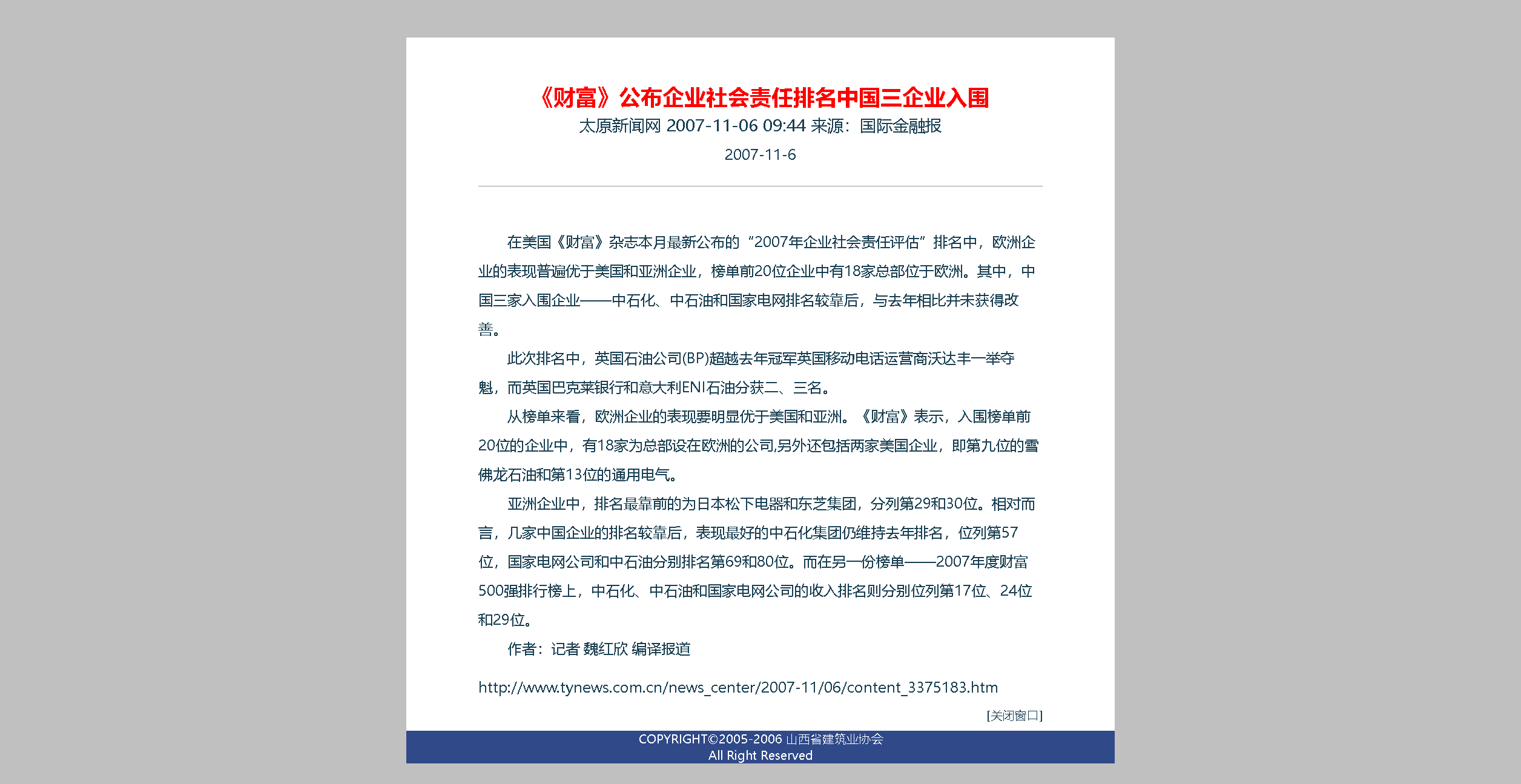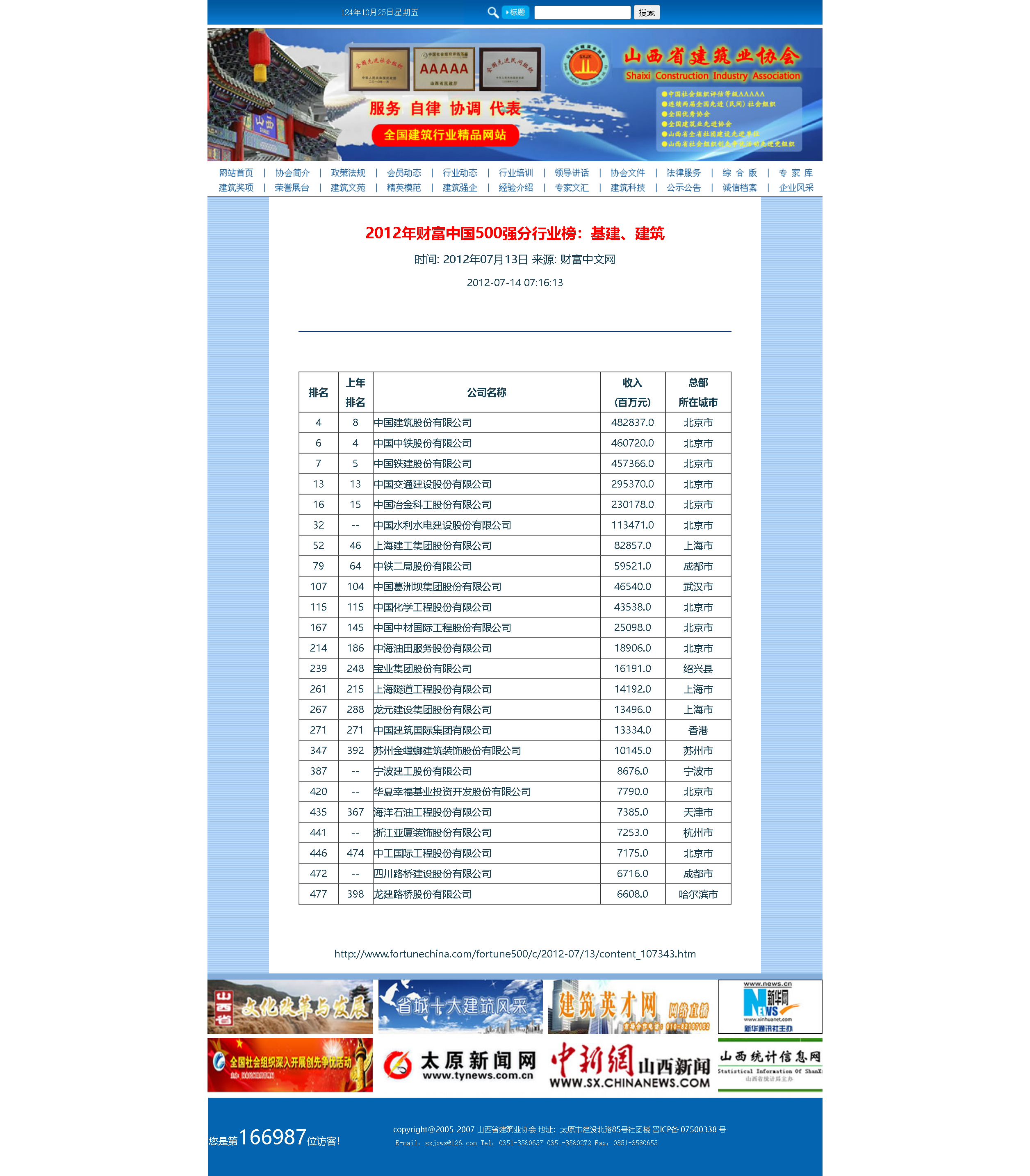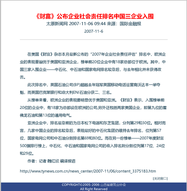 二十年前,第一次发现北方网世界500强专题报道这个栏目,激发起强烈的兴趣和爱好,由此一发而不可收。尤其是在建筑业协会搞网站,更是把关注重点放在分门别类的排行榜上,及时转载并且保存起来。