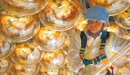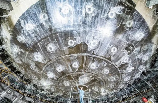 江门中微子实验有机玻璃球安装。中国科学院高能物理研究所