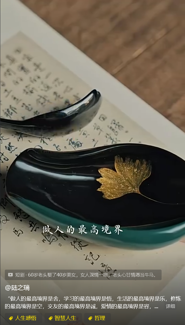 弘一法师说:“ 做人的最高境界是舍;生活的最高境界是乐;学习的最高境界是悟;修炼的最高境界是空;交友的最高境界是诚;爱情的最高境界是容;人生的最高境界是静。这七个境界浓缩成了一个句子,那就是爱和慈悲。”