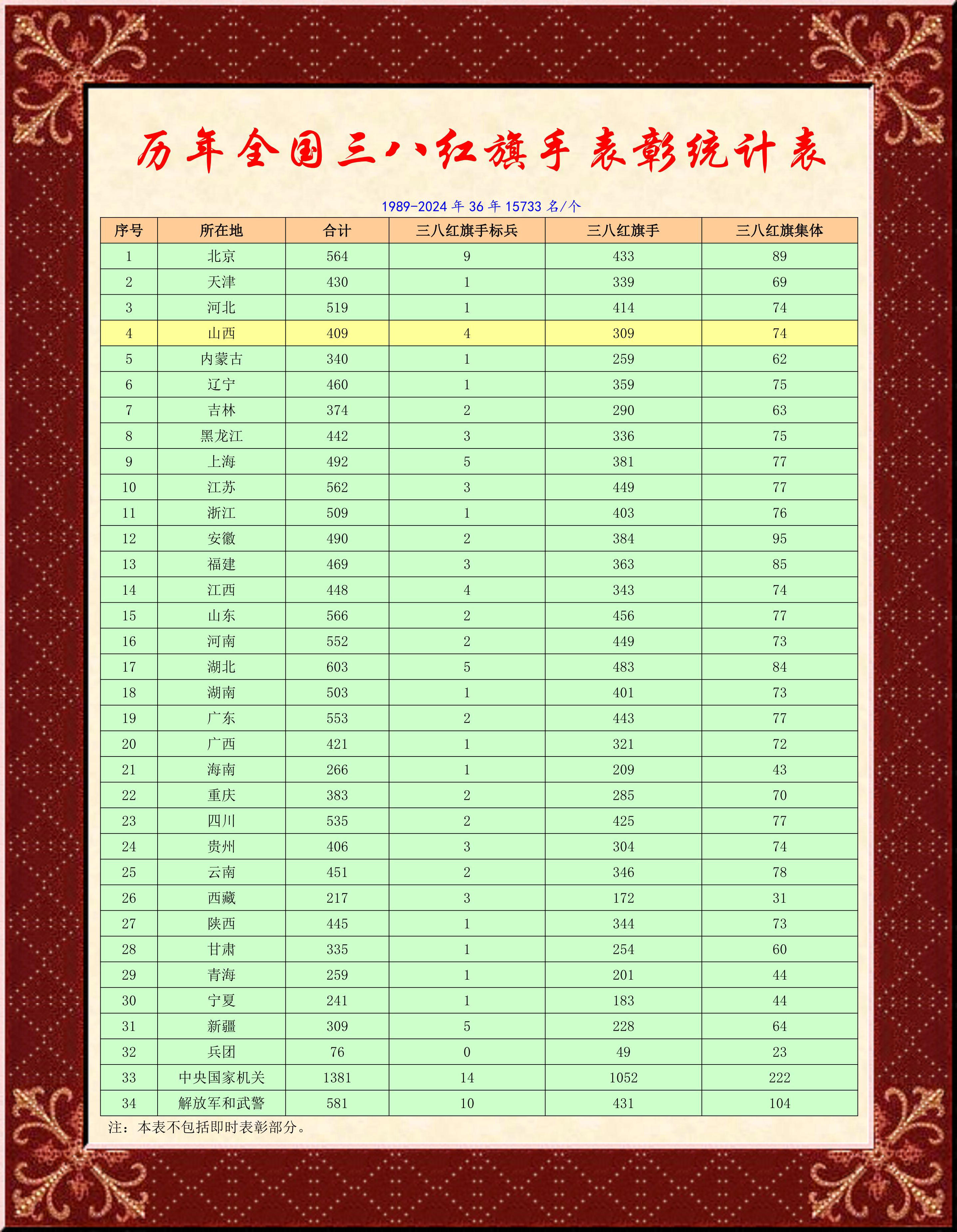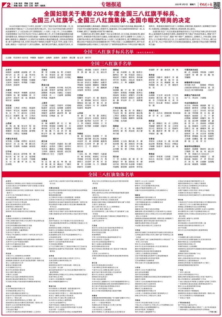 三八红旗标兵4名、三八红旗手329、三八红旗集体76个,共计409名/个