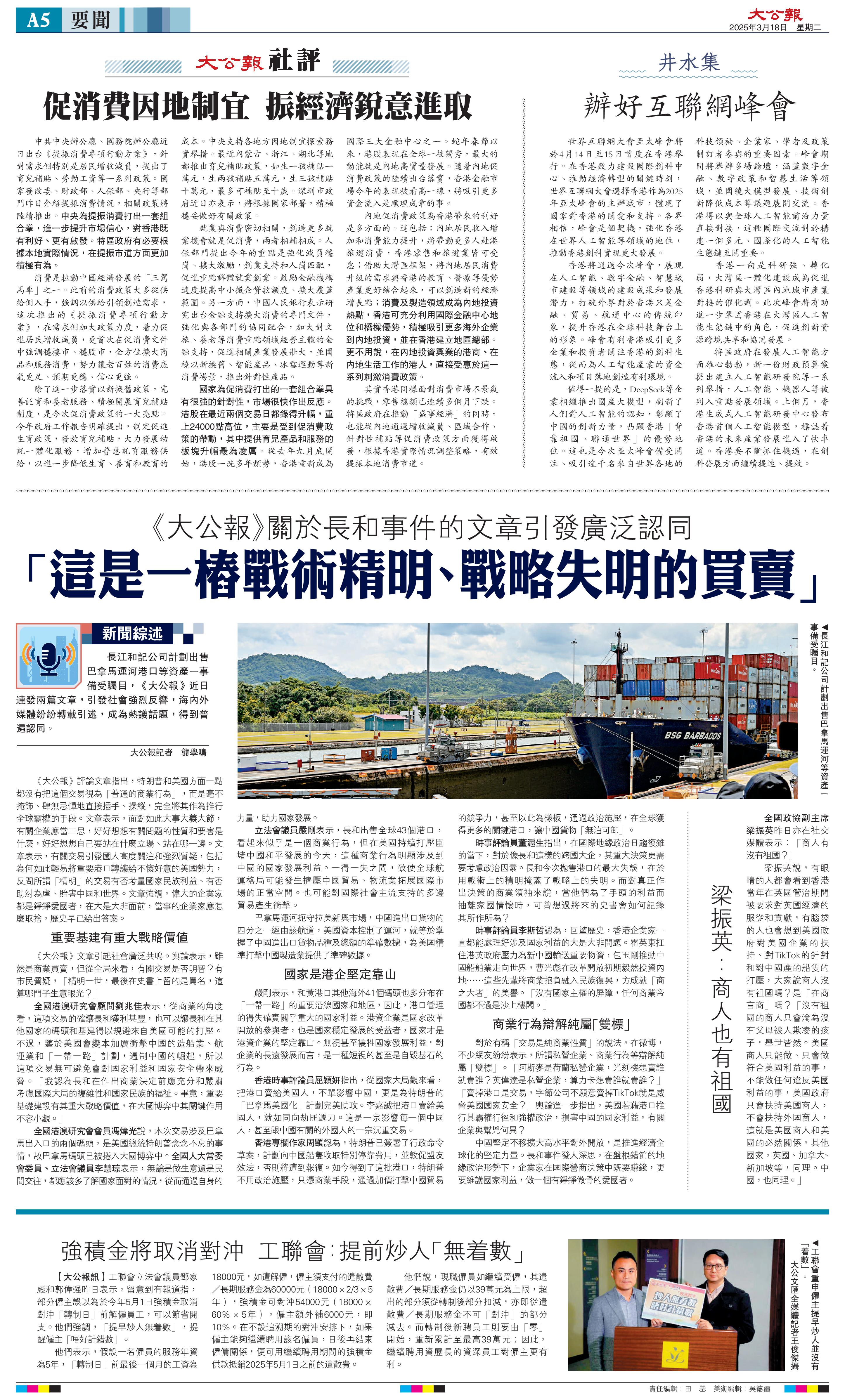 并称,李嘉诚这一举动更像是在给美国霸权递刀子,同时对其发出质问“是否在助纣为虐”,此外,香港《大公报》再次发表文章,文章中提出了五个问题来质疑李嘉诚。