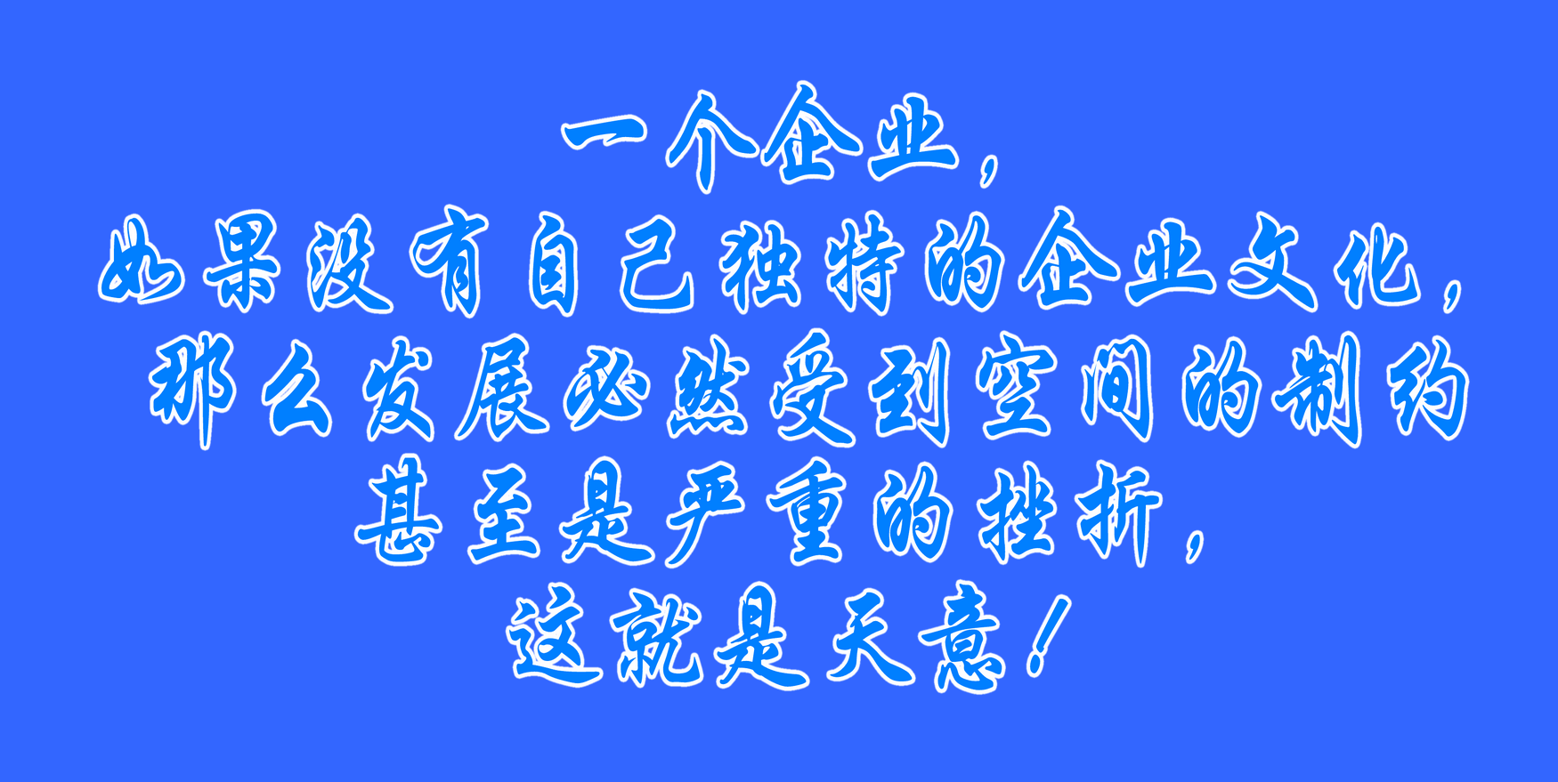 一个企业,如果没有自己独特的企业文化,那么发展必然受到空间的制约甚至是严重的挫折,这就是天意!