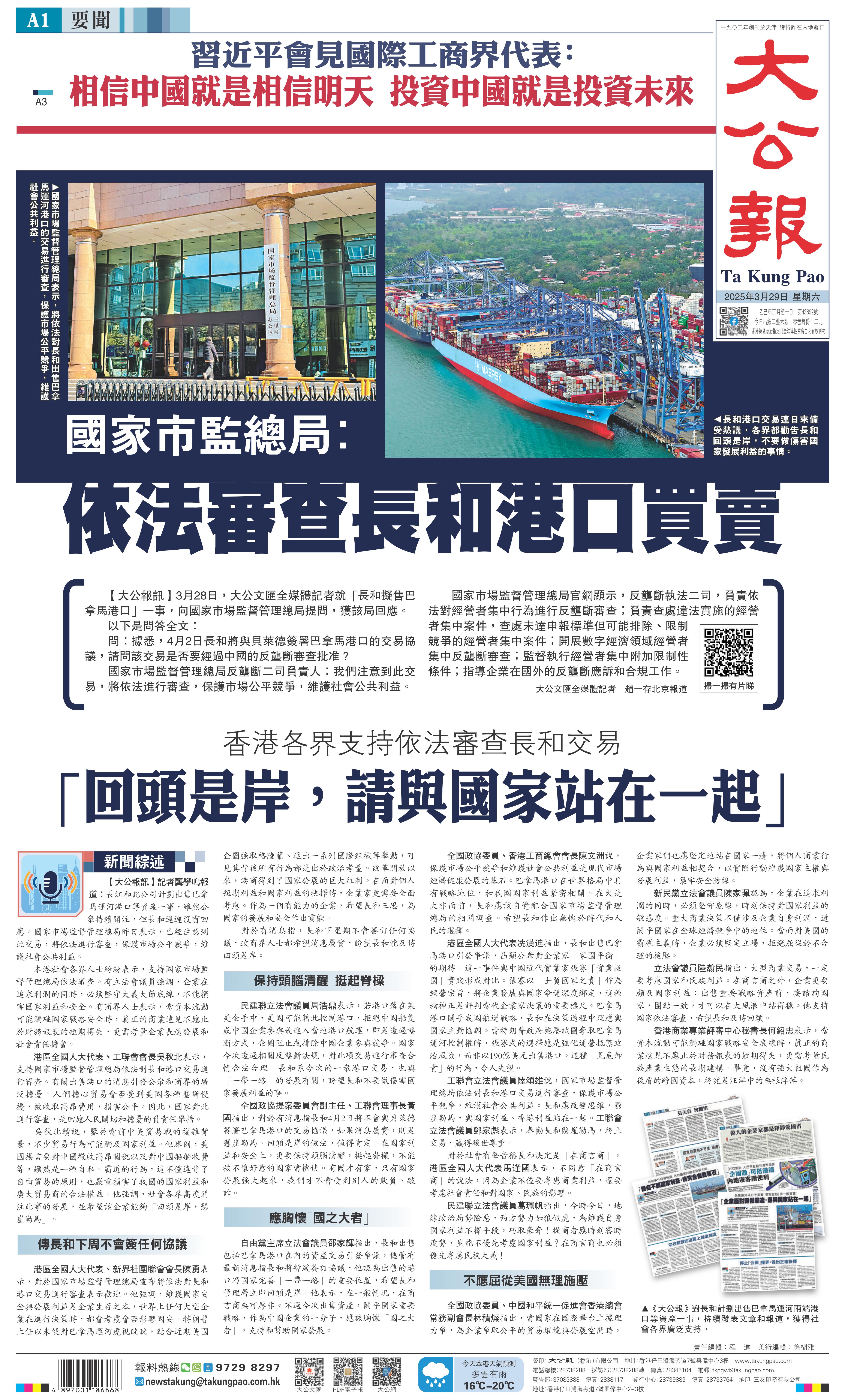 长和事件持续热议 各界吁算好国家发展大账 “营商不顾国家利益,终究会自毁基石”2025-03-26