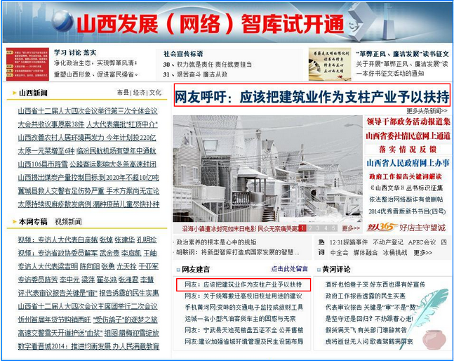 这是2015年1月30日,黄河新闻网在首页头条突出位置刊登我给省委书记王儒林的建言。