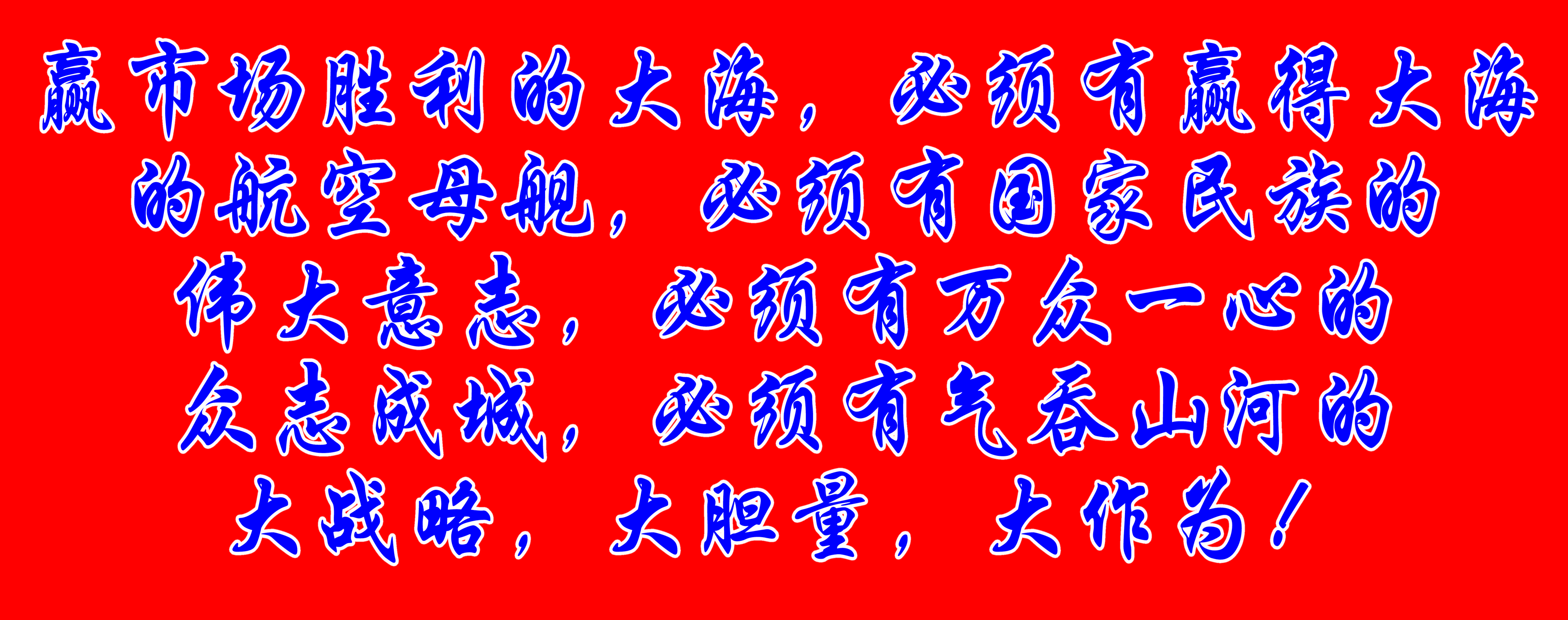 赢市场胜利的大海,必须有赢得大海的航空母舰,必须有国家民族的伟大意志,必须有万众一心的众志成城,必须有气吞山河的大战略,大胆量,大作为!