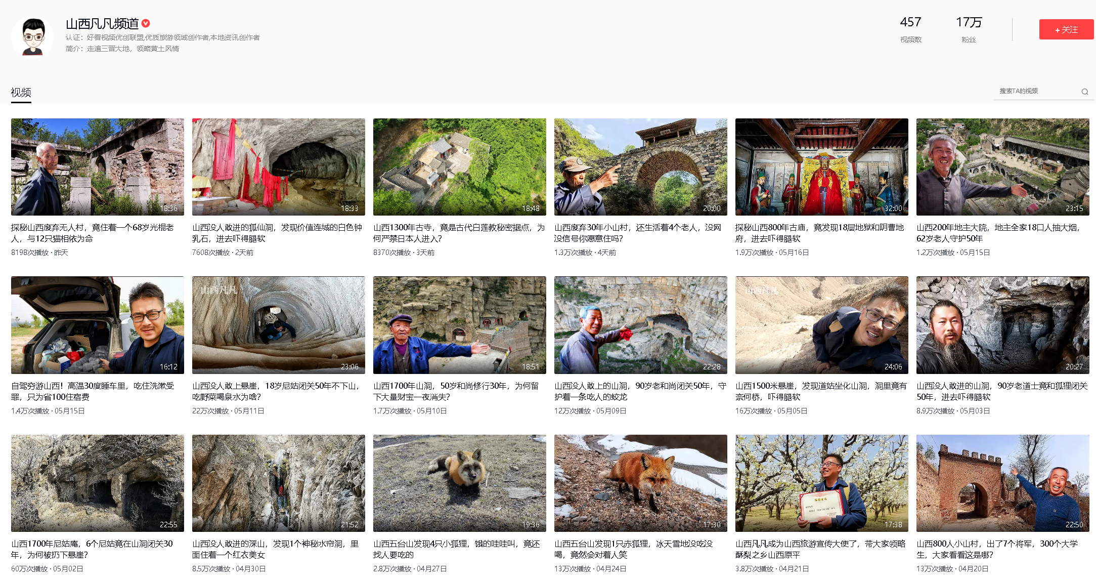 偶然看到山西凡凡制作的视频节目,很快被他不畏艰险,翻山越岭,攀登悬崖峭壁那种不怕困难的顽强精神所征服,所感动,所钦佩。据说这位叫李凡的山西原平人,他把介绍山西古老文明和民间故事作为人生追求,可谓是善德善为,身体力行,知行合一,功德无量。