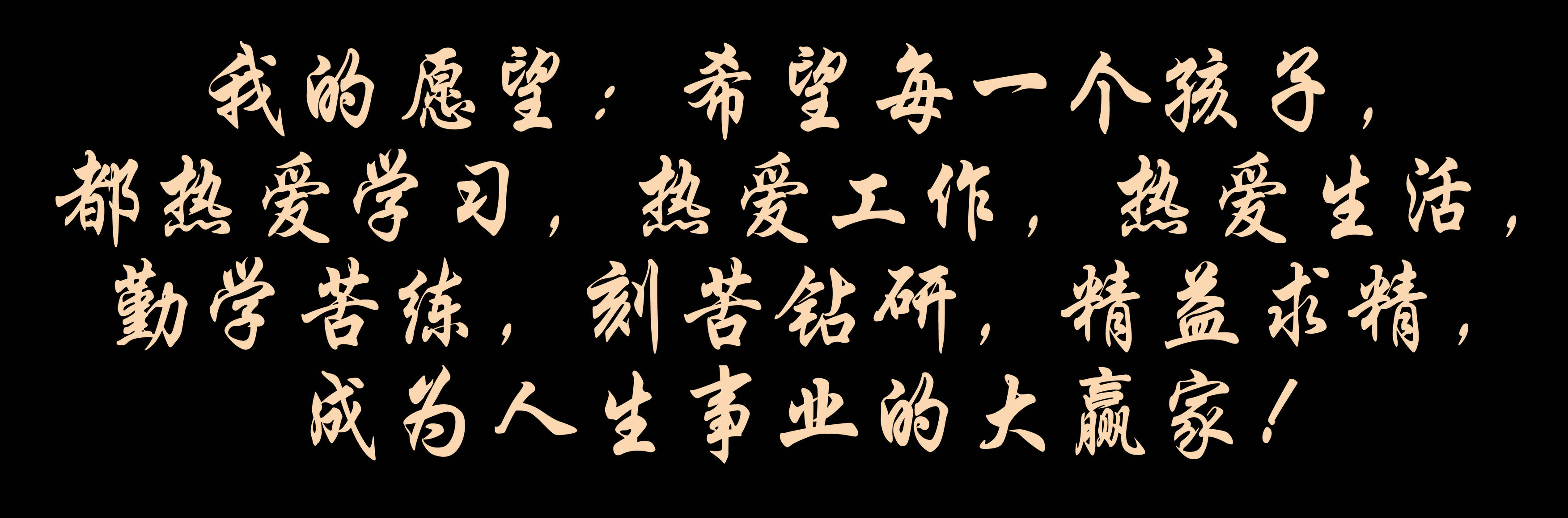 我的愿望:希望每一个孩子,都热爱学习,热爱工作,热爱生活,勤学苦练,刻苦钻研,精益求精,成为人生事业的大赢家!