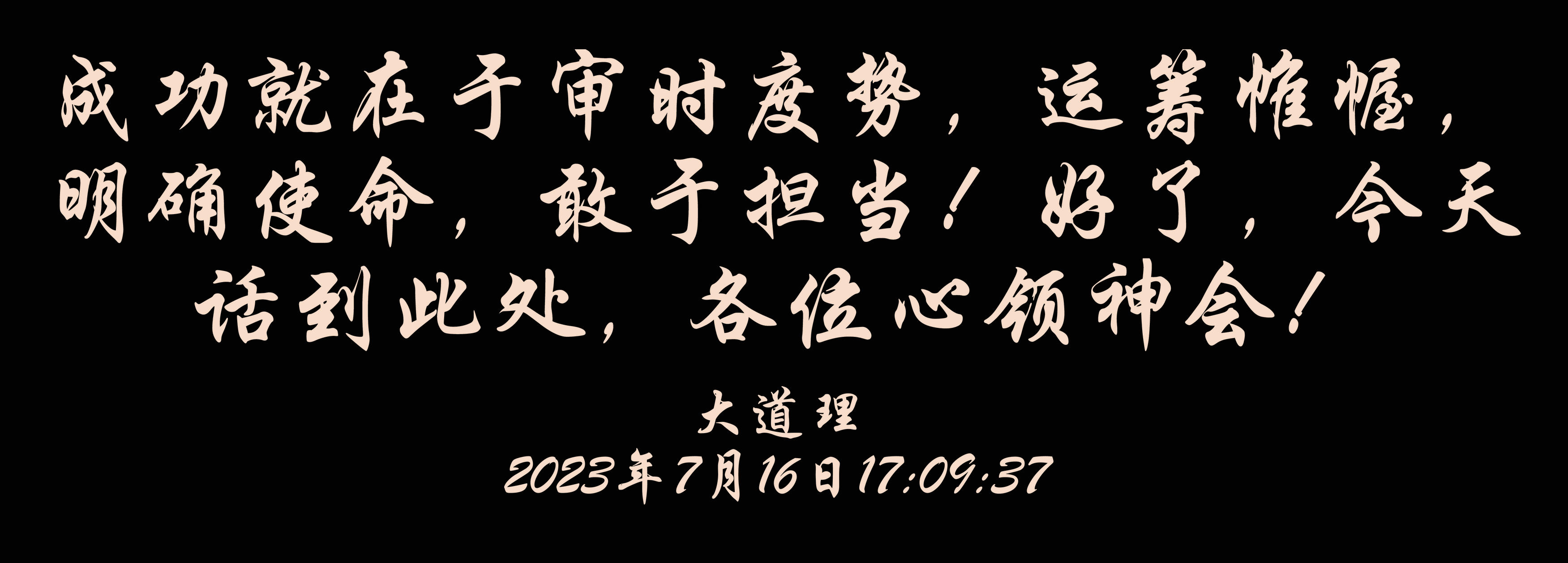 成功就在于审时度势,运筹帷幄,明确使命,敢于担当!好了,今天话到此处,各位心领神会!