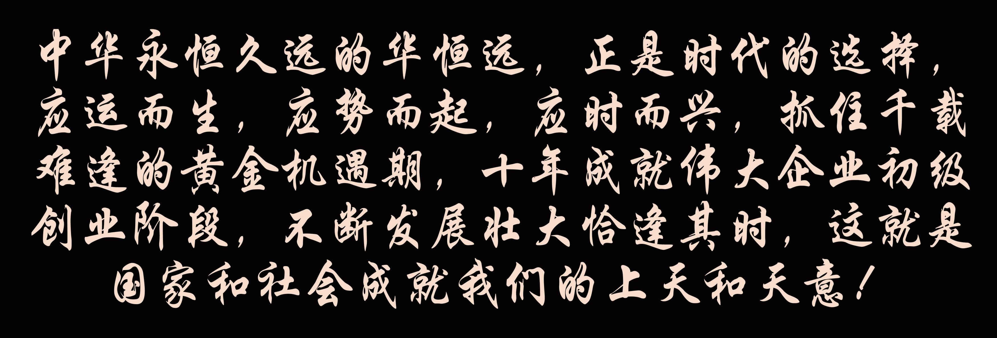 中华永恒久远的乐天堂fun88,正是时代的选择,应运而生,应势而起,应时而兴,抓住千载难逢的黄金机遇期,十年成就伟大企业初级创业阶段,不断发展壮大恰逢其时,这就是国家和社会成就我们的上天和天意!
