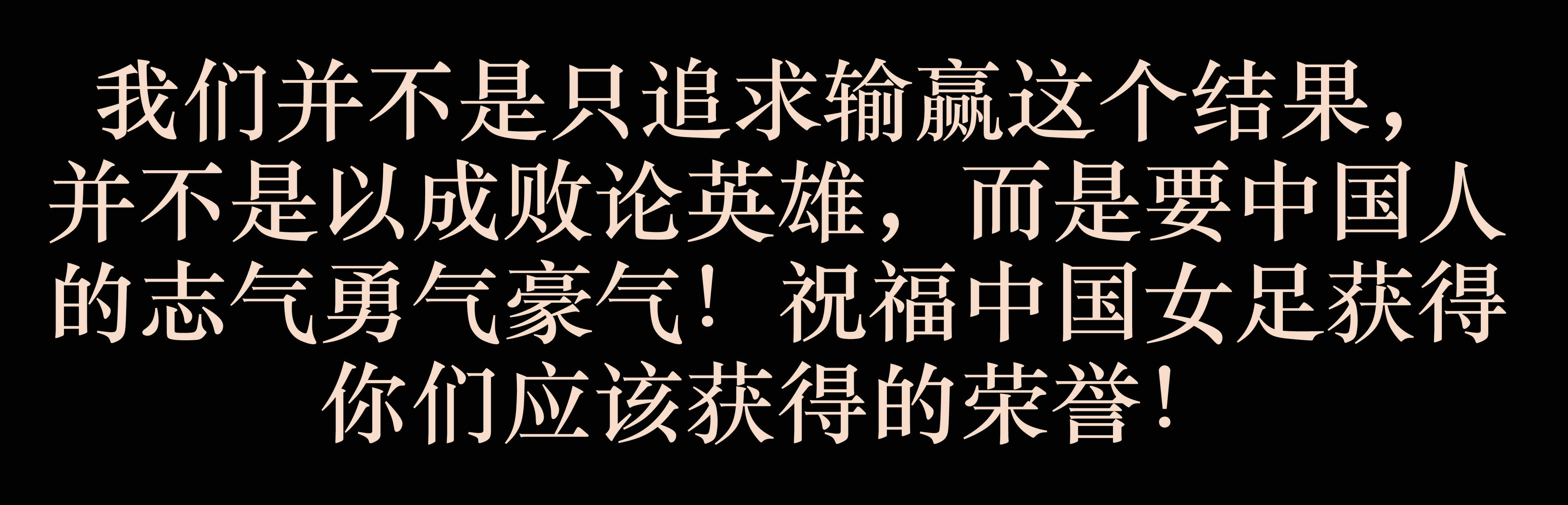 我们并不是只追求输赢这个结果,并不是以成败论英雄,而是要中国人的志气勇气豪气!
