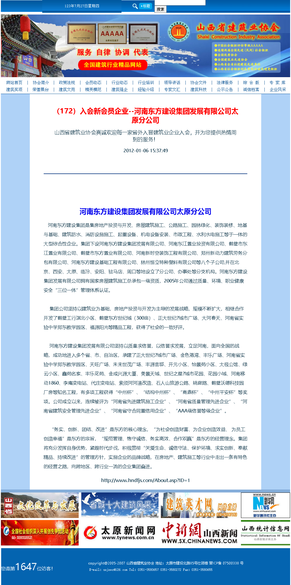 37. 浙江省东阳市江南建设有限公司山西分公司