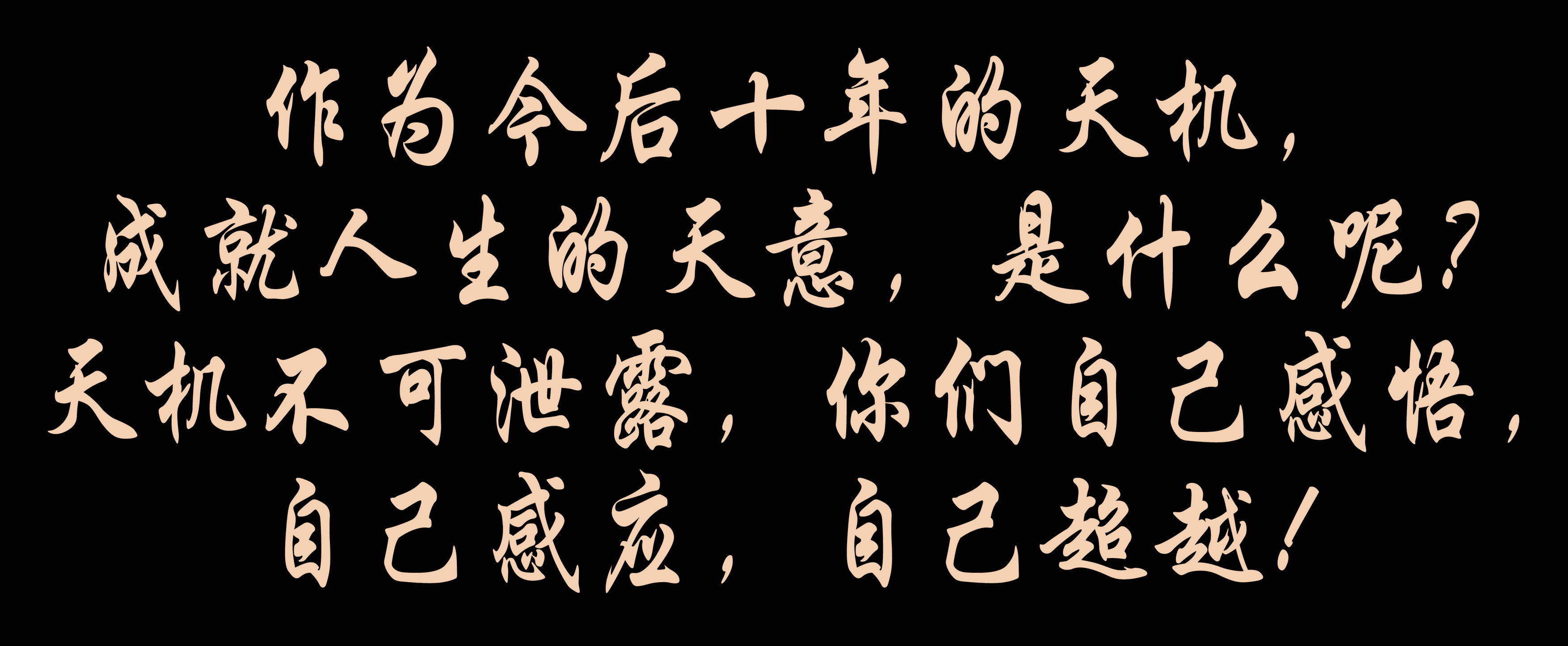 作为今后十年的天机,成就人生的天意,是什么呢?天机不可泄露,你们自己感悟,自己感应,自己超越!